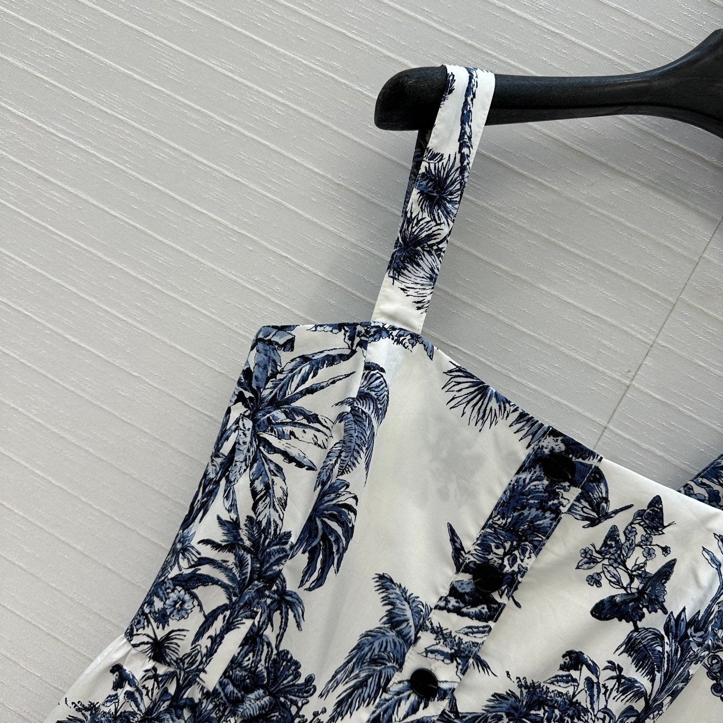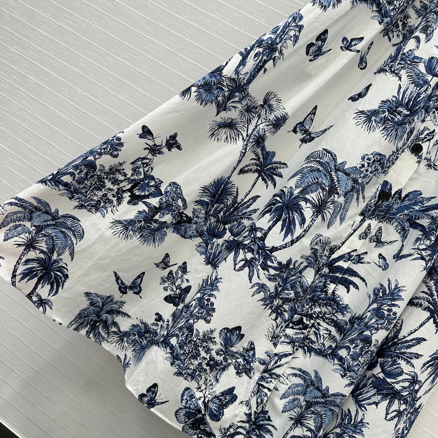 CD 25 Butterfly Coconut Print Tube Dress White Blue Cotton
