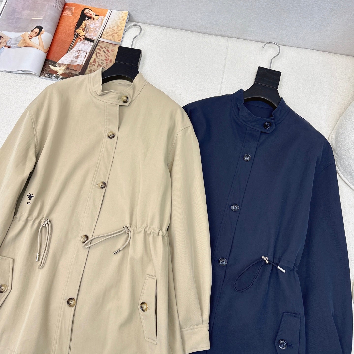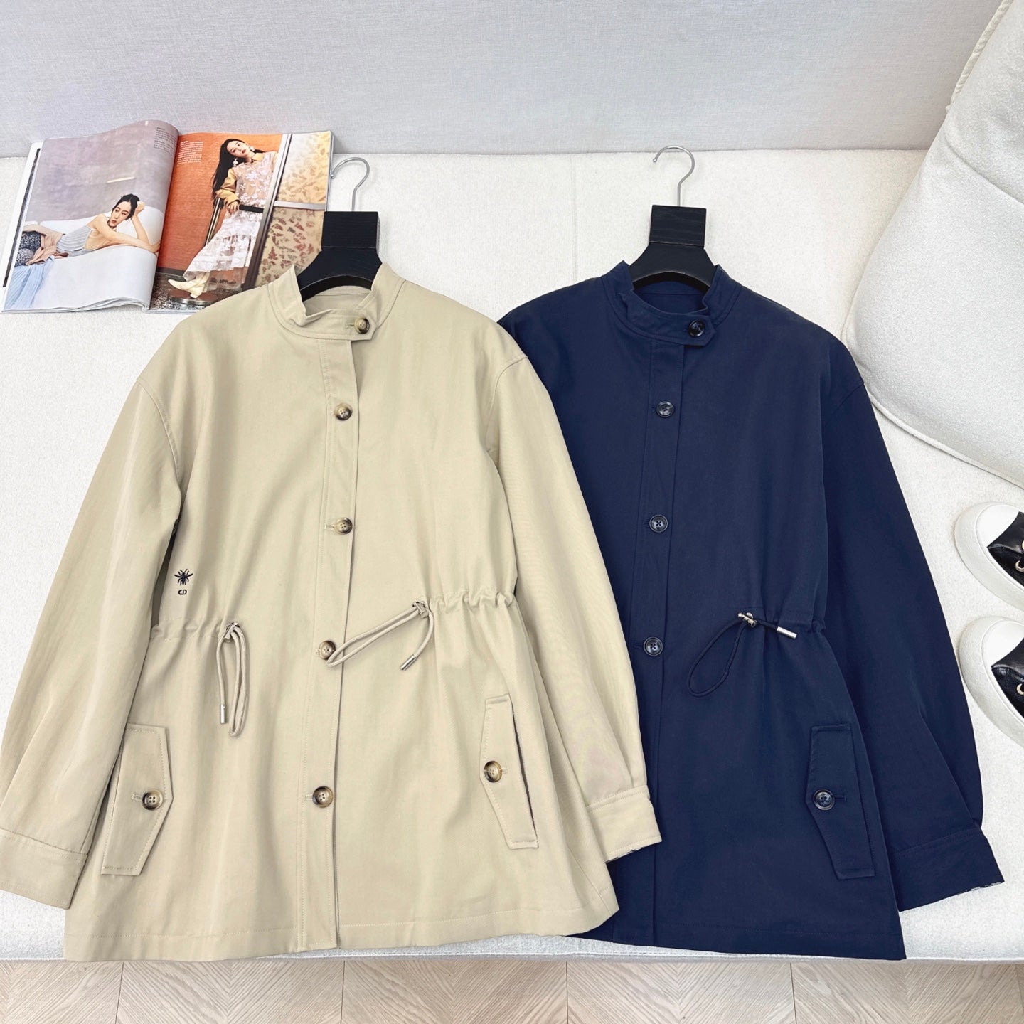 CD 25 Mid-length Trench Coat Blue and Beige Cotton Polyester 593395