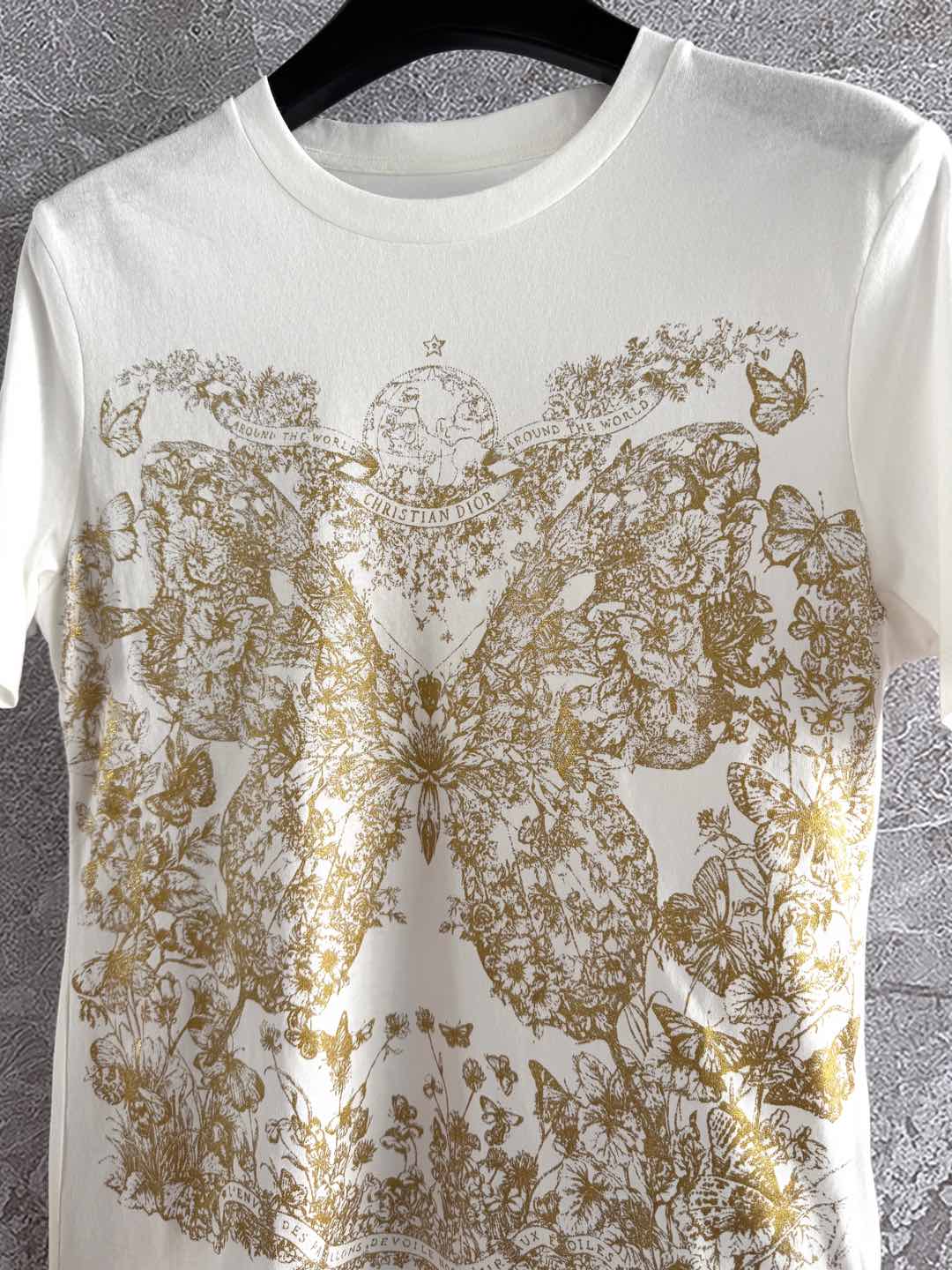 CD Butterfly T-shirt White mix Yellow Cotton Linen