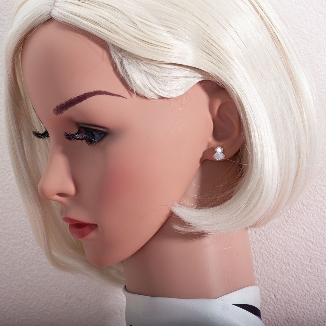 WULU MOP DIAMOND PINK GOLD STUD EARRINGS