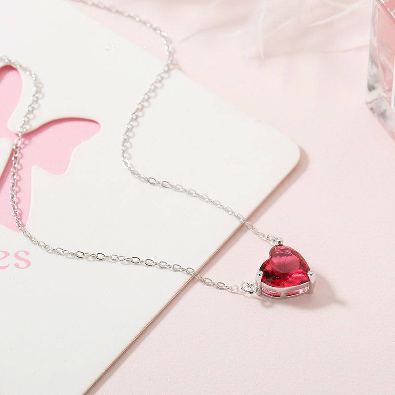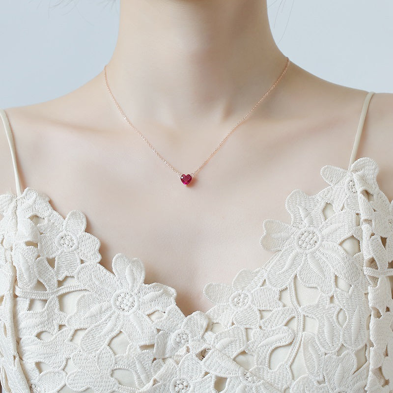 Real 925 Sterling Silver Cute Red Crystal Heart Choker Necklace Personality Fine Jewelry For Women Wedding Accessories