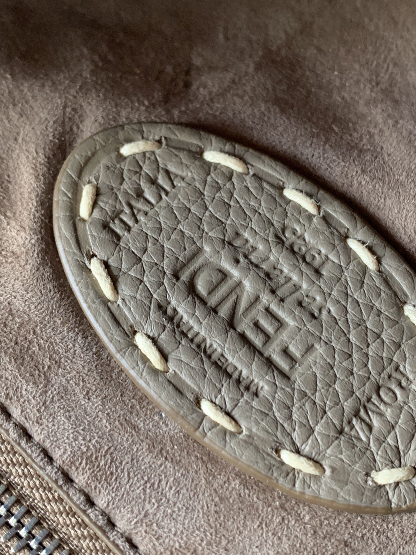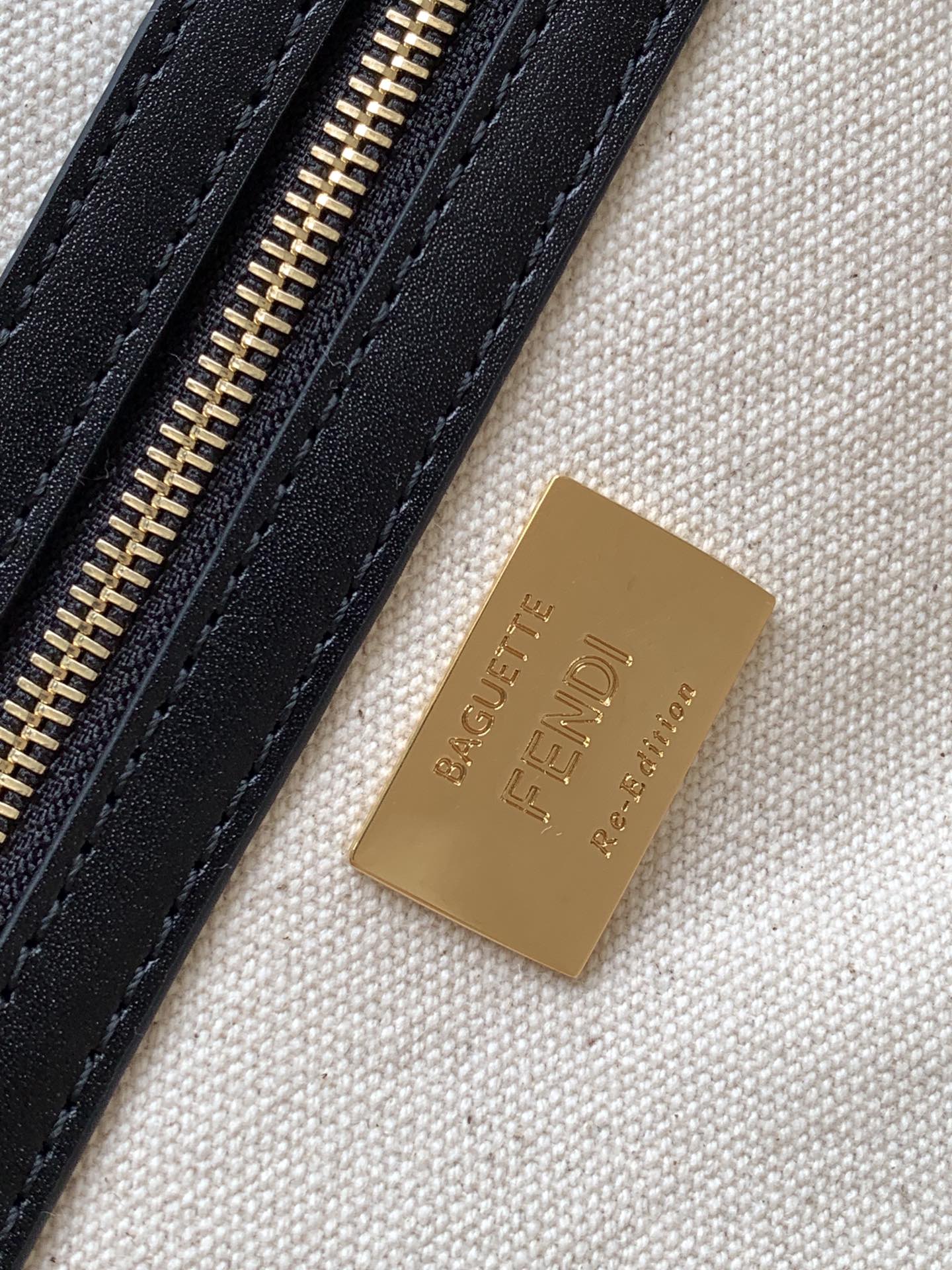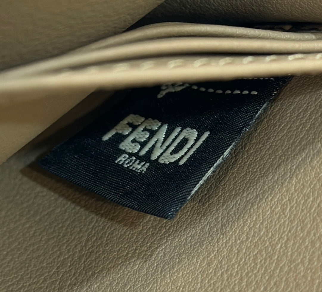 Fend Baguette Tan Beige Canvas Bag 27 with FF Embroidery Ghw