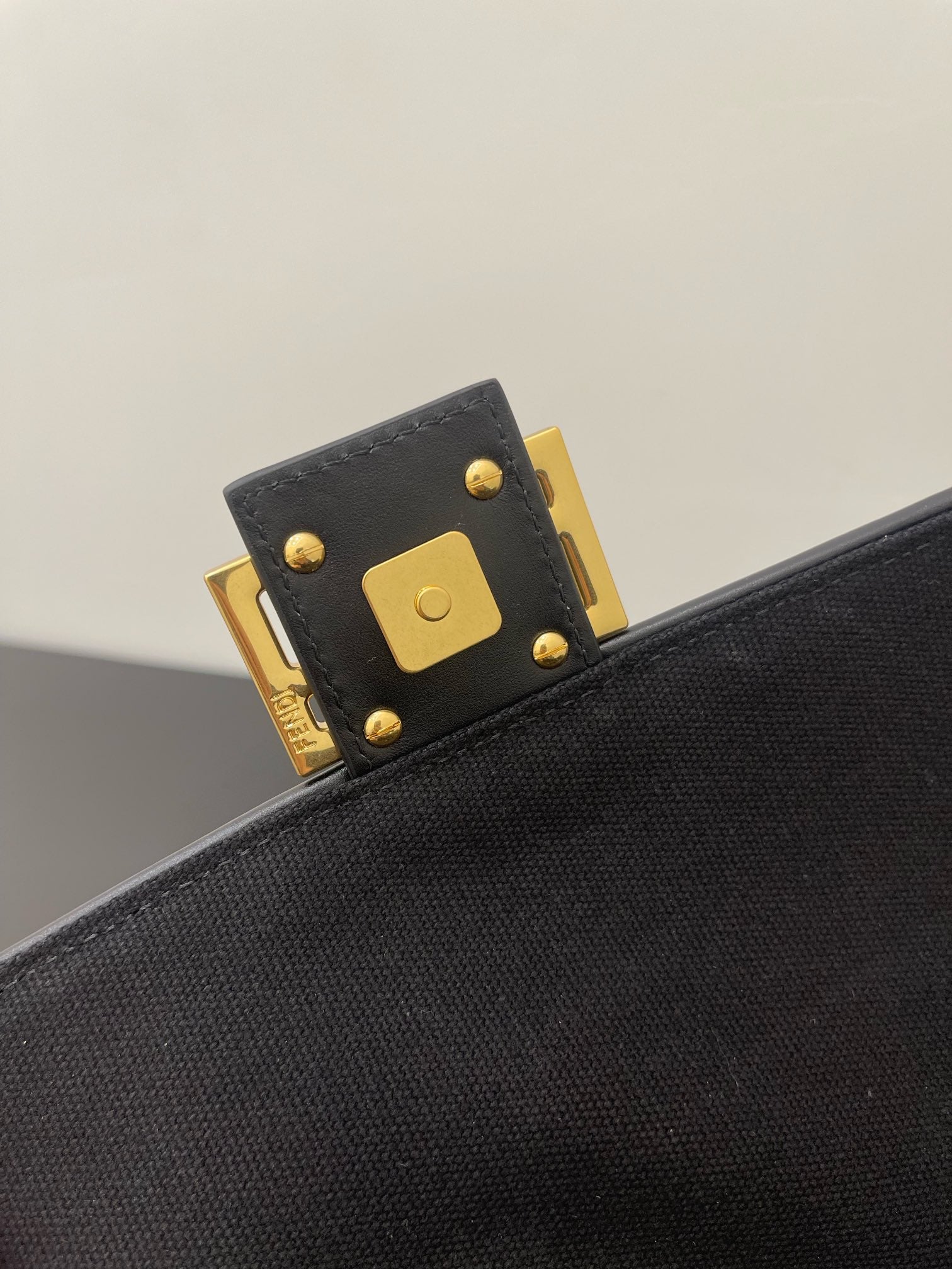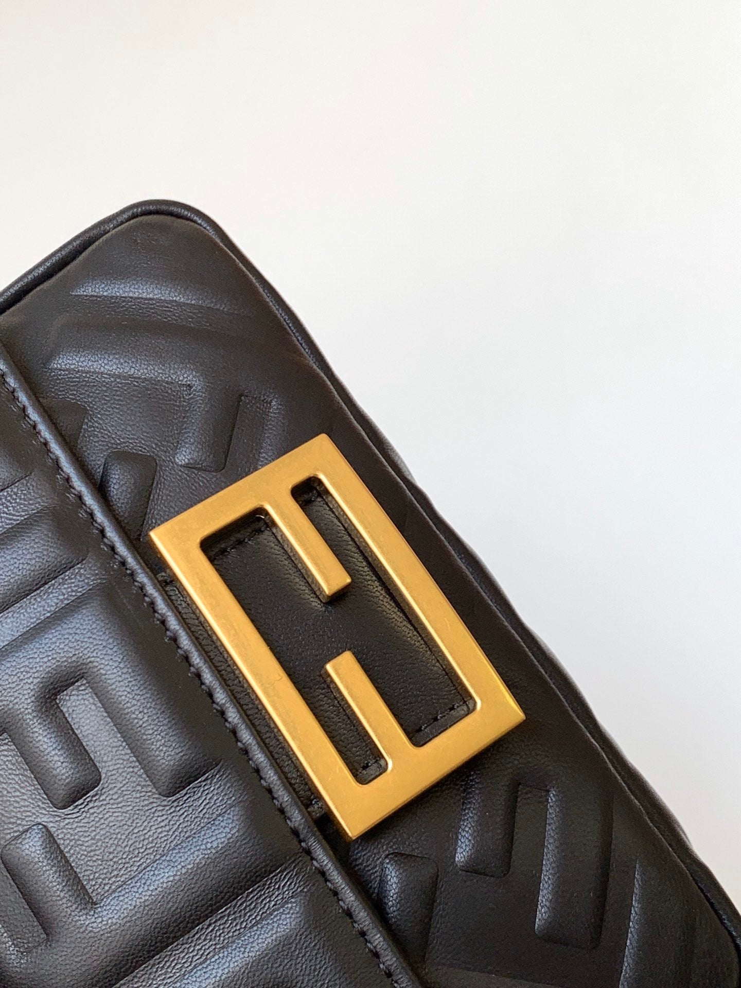 Fend Baguette 27 Bag With FF Motif Black Leather Ghw