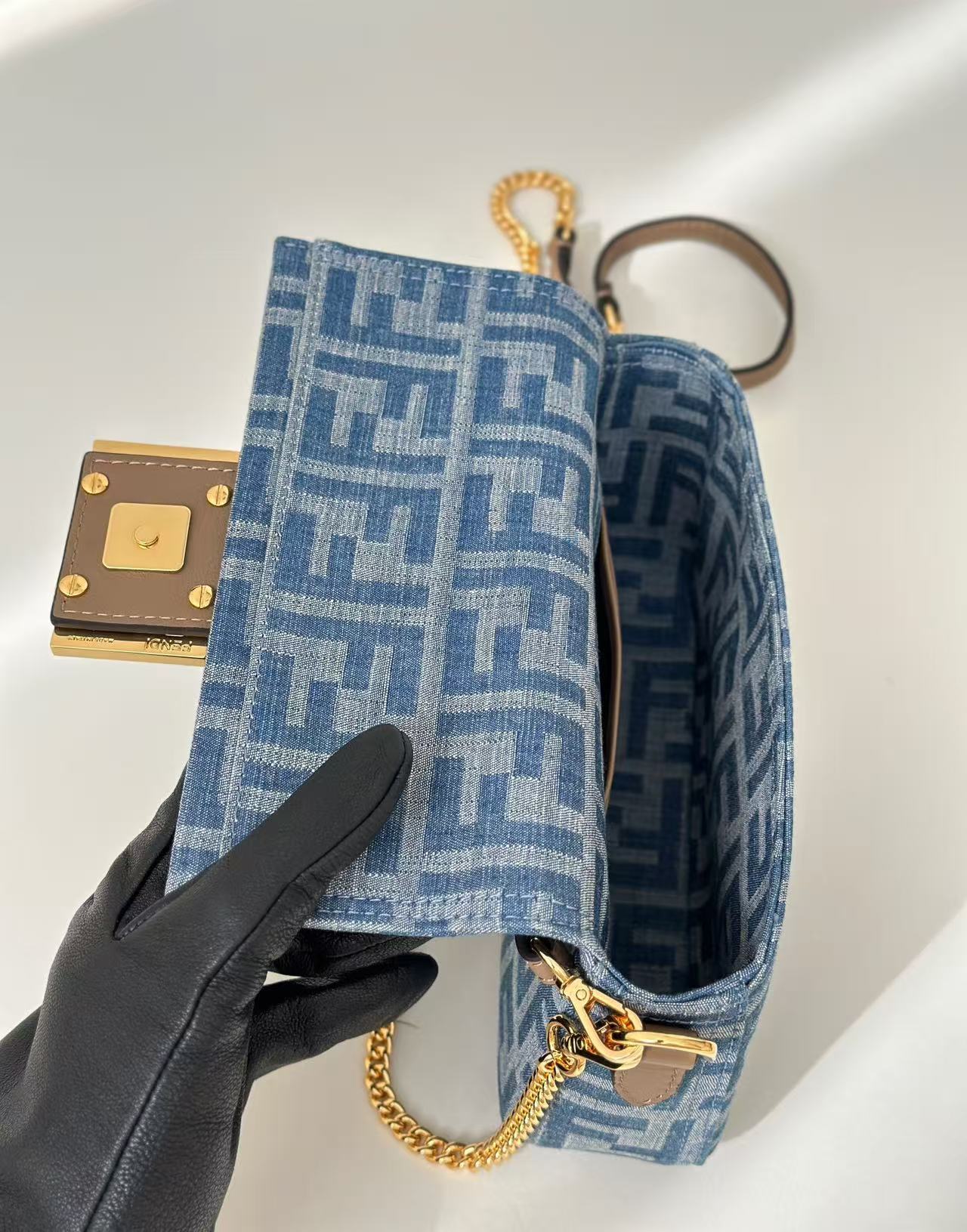 FENDIGRAPHY MINI 20 BAG IN AEGEAN BLUE DENIM FABRIC WITH GOLD HARDWARE