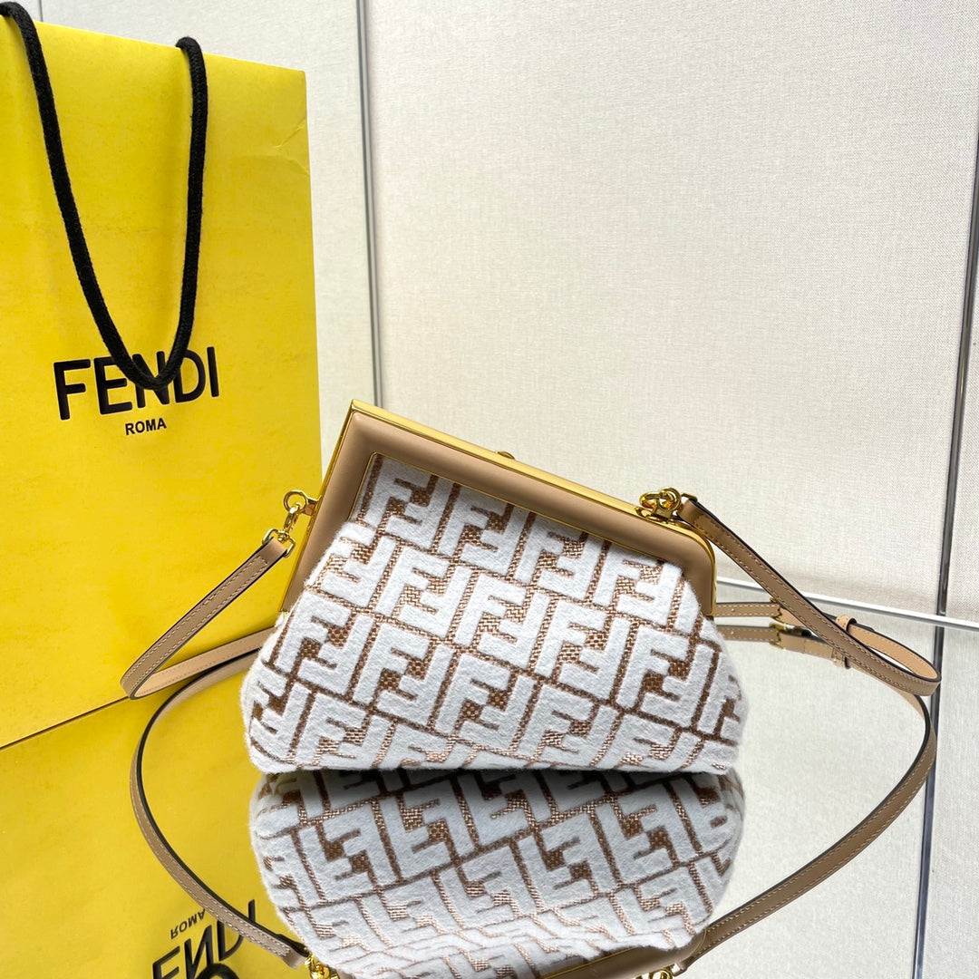 FIRST SMALL 26 IN WHITE WOOL AND CAMEL BROWN RAFFIA CALFSKIN TRIM