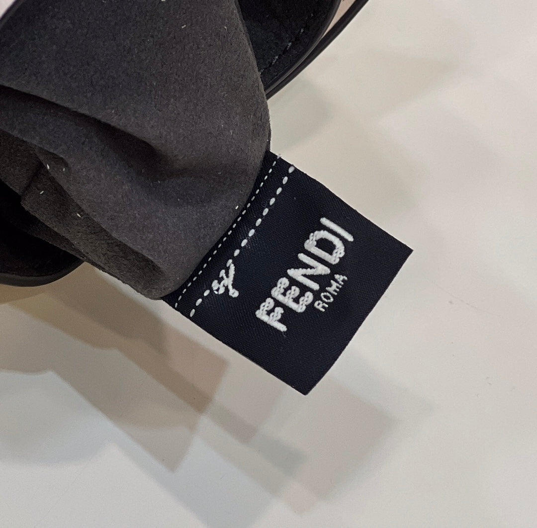 FENDI ROMA 22 CLUTCH BAG IN DARK GREY FF CALFSKIN SILVER HARDWARE WITH WHITE LOGO