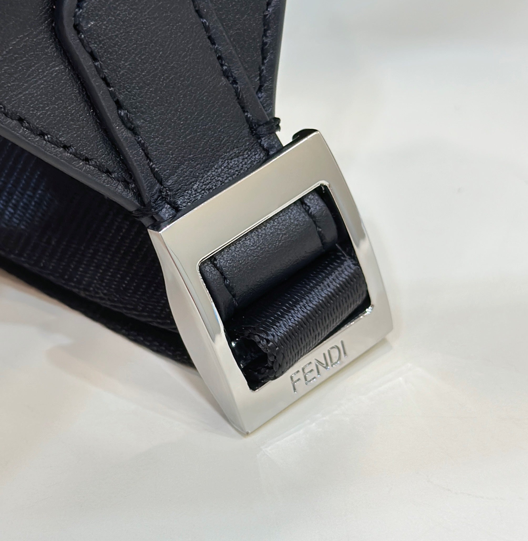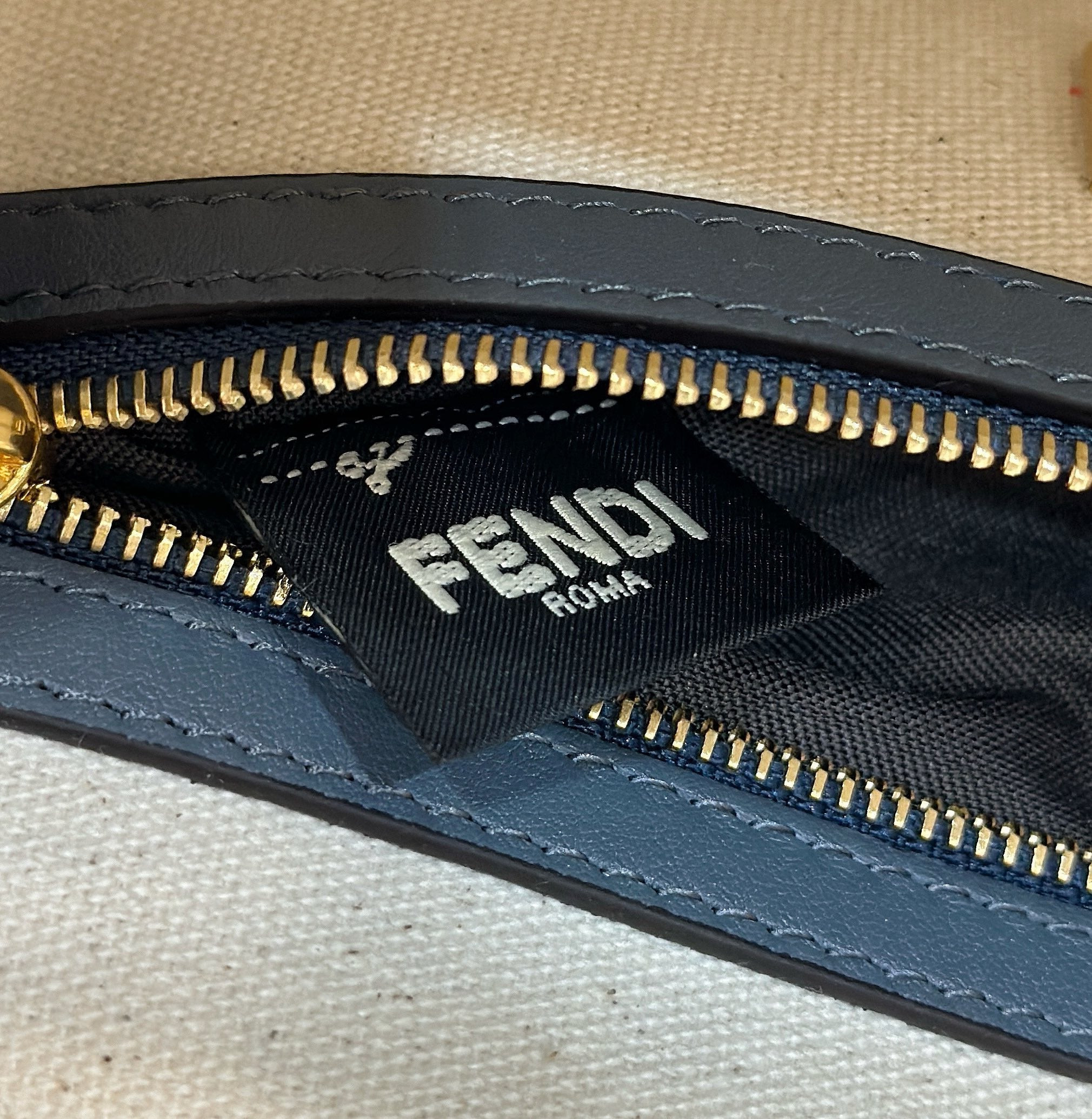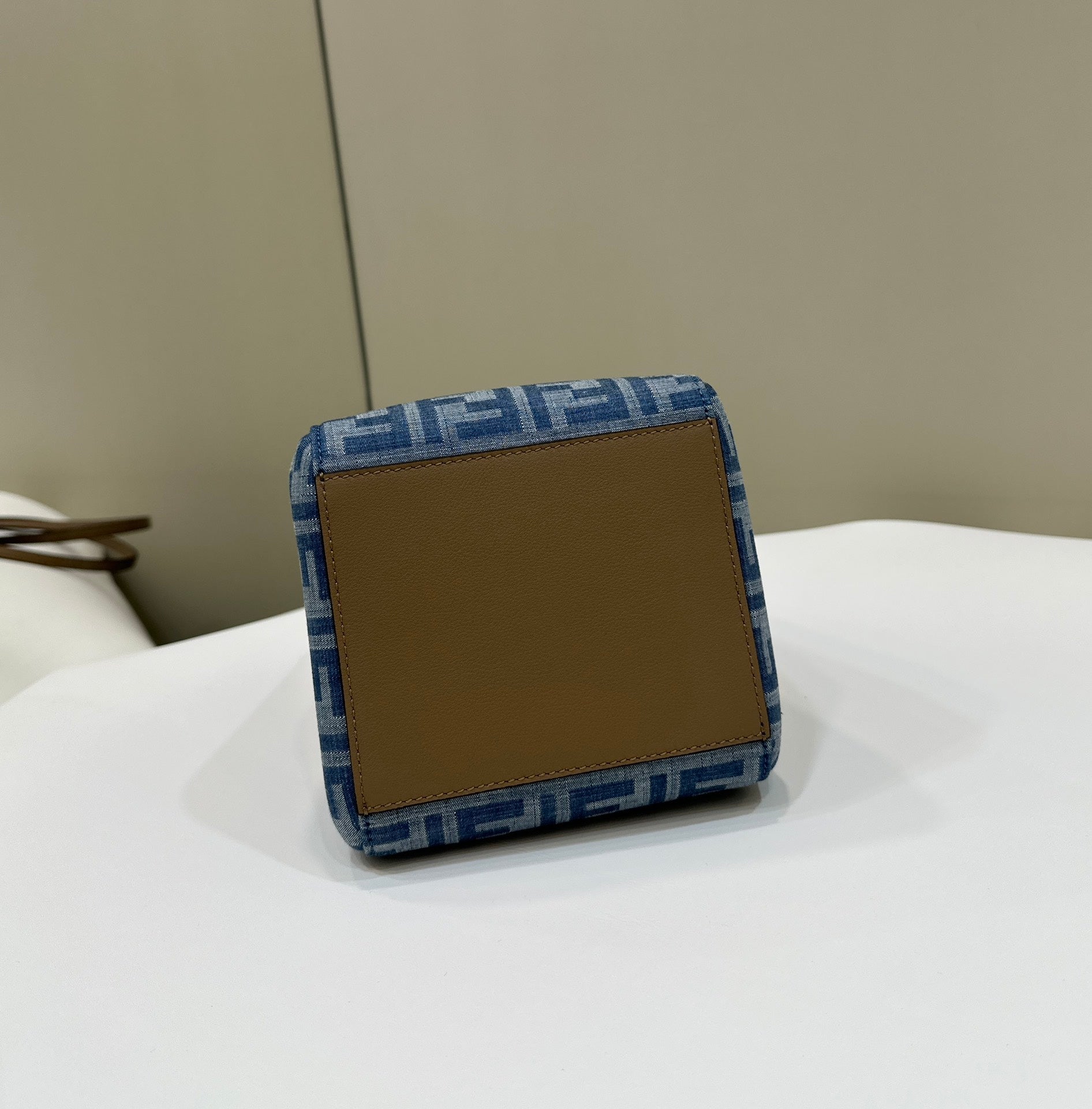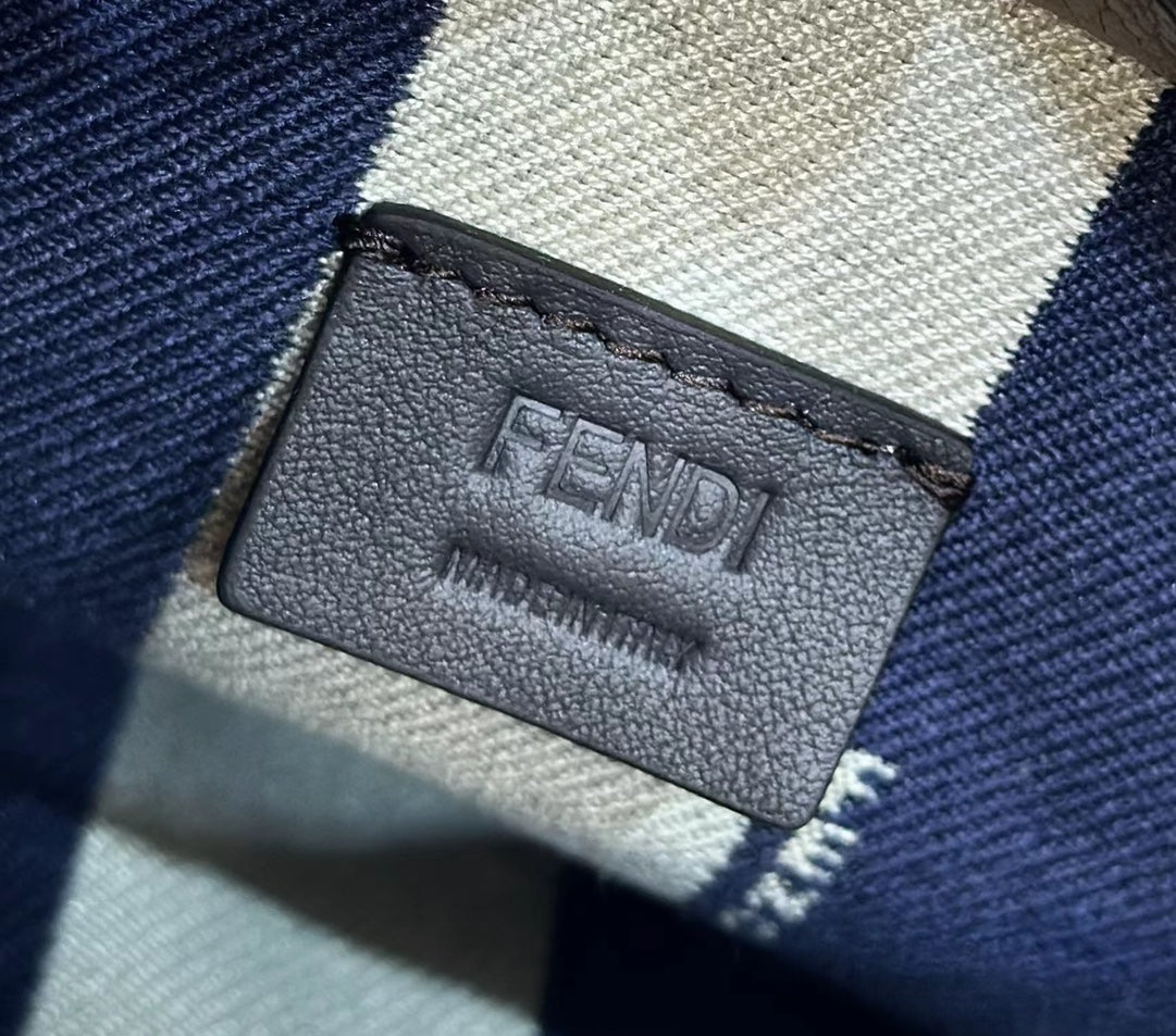 FENDI ORIGAMI MINI 19 IN TRUE BLUE MONOGRAM DENIM WITH CALFSKIN STRAP