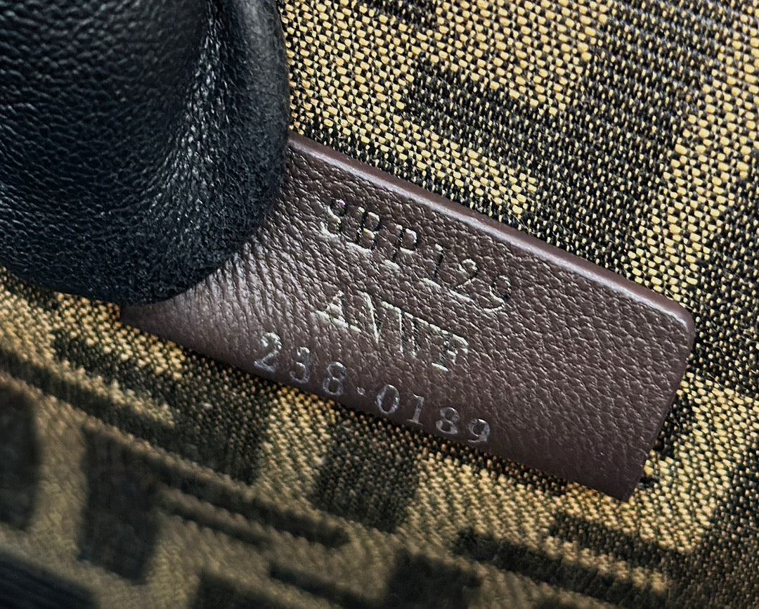 FENDI ORIGAMI MEDIUM 27 BROWN MIX BLACK FF JACQUARD FABRIC BAG
