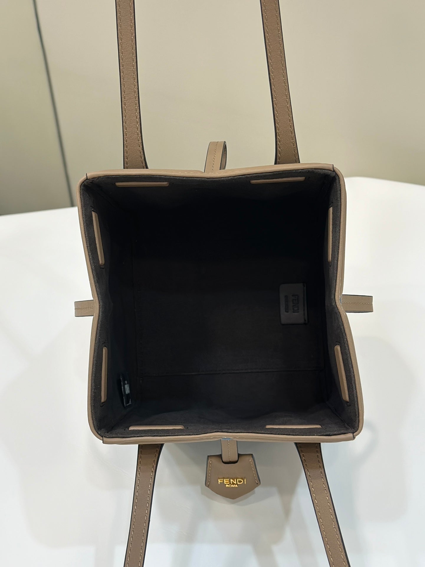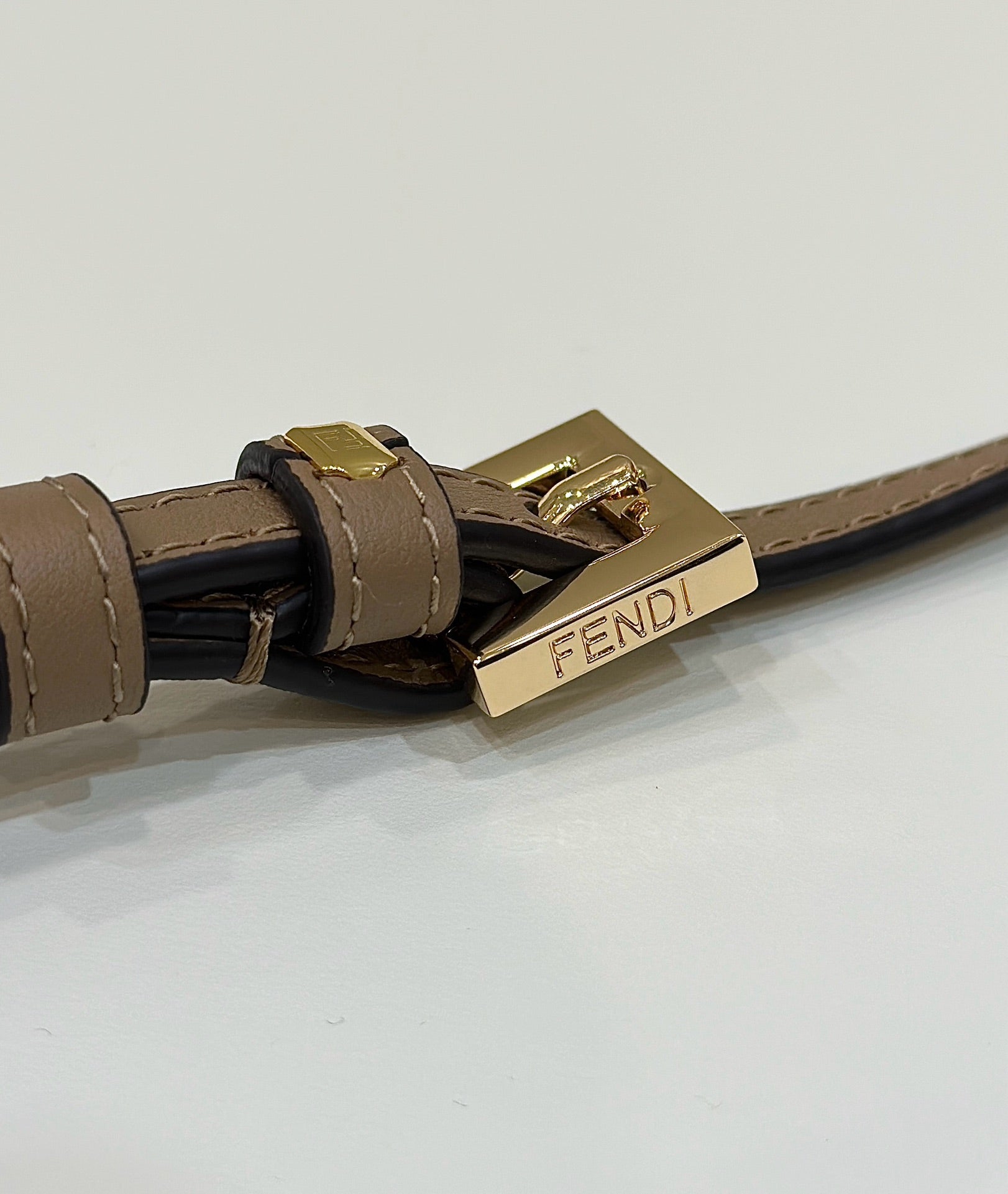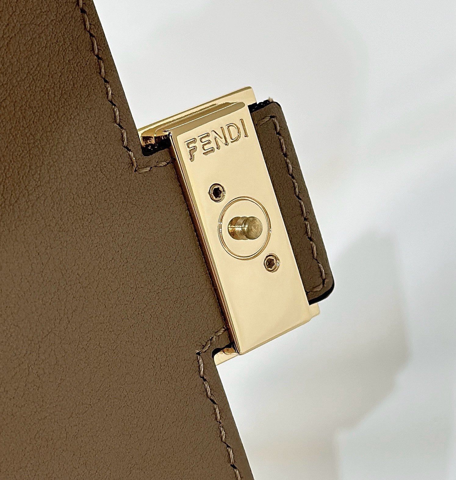 FENDI PEEKABOO 33 BAG IN KHAKI CALFSKIN WITH STRAP GOLD HARDWARE