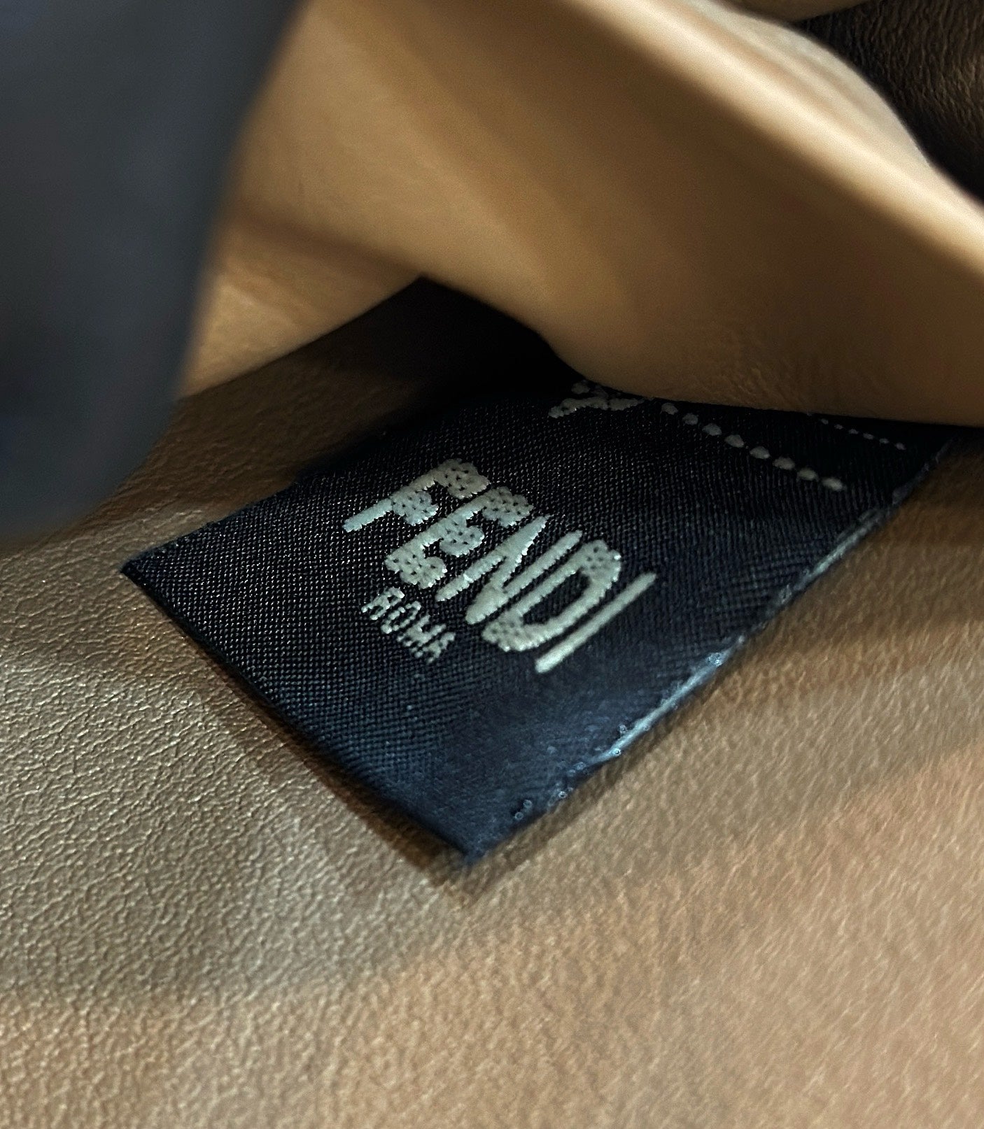 FENDI PEEKABOO 27 IN CAMEL BROWN CALFSKIN WITH GOLD HARDWARE