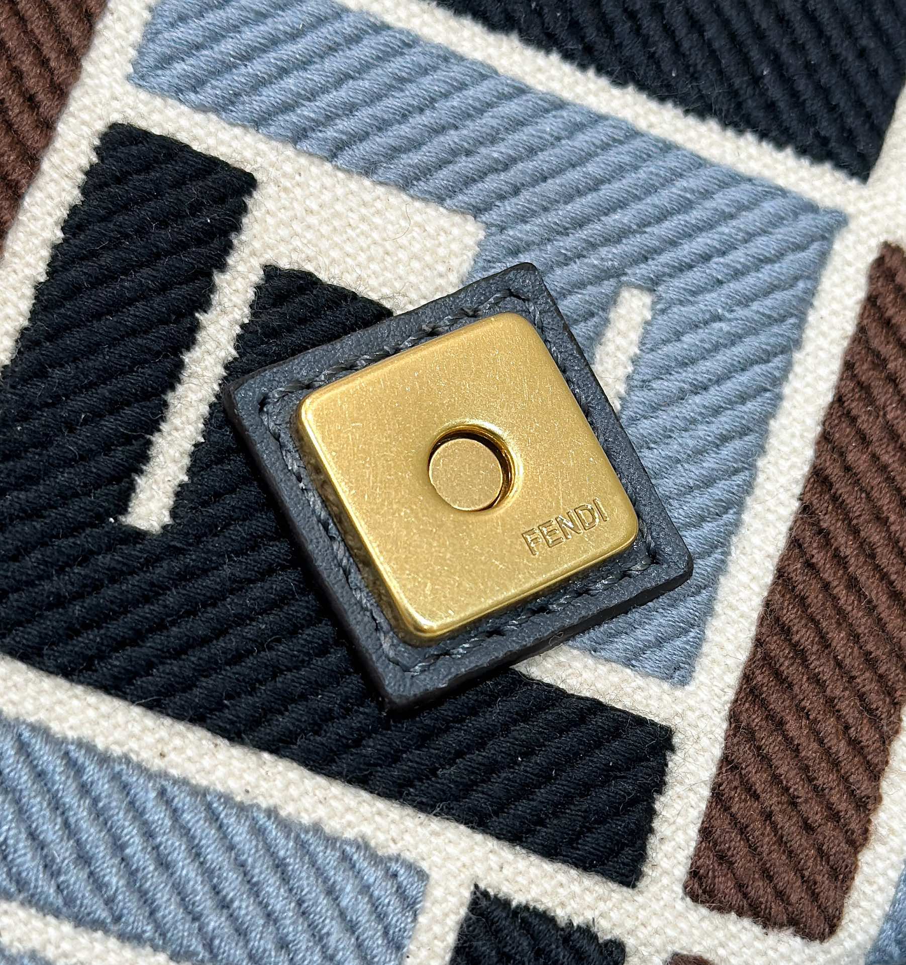 FENDI ORIGAMI LARGE 33 BROWN MIX BLACK FF JACQUARD FABRIC BAG
