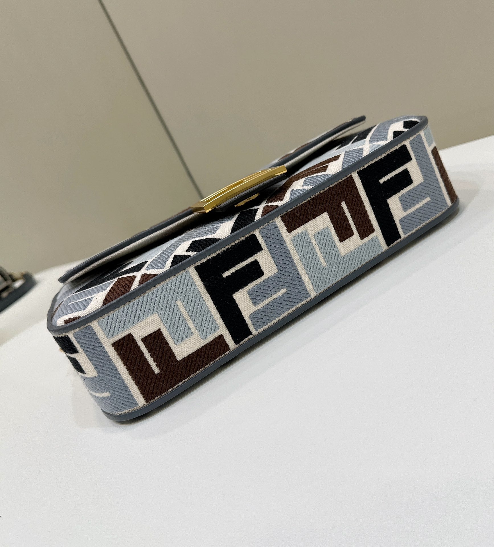 FENDI MEDIUM 27 BAG IN TRUE BLUE MONOGRAM DENIM GOLD HARDWARE
