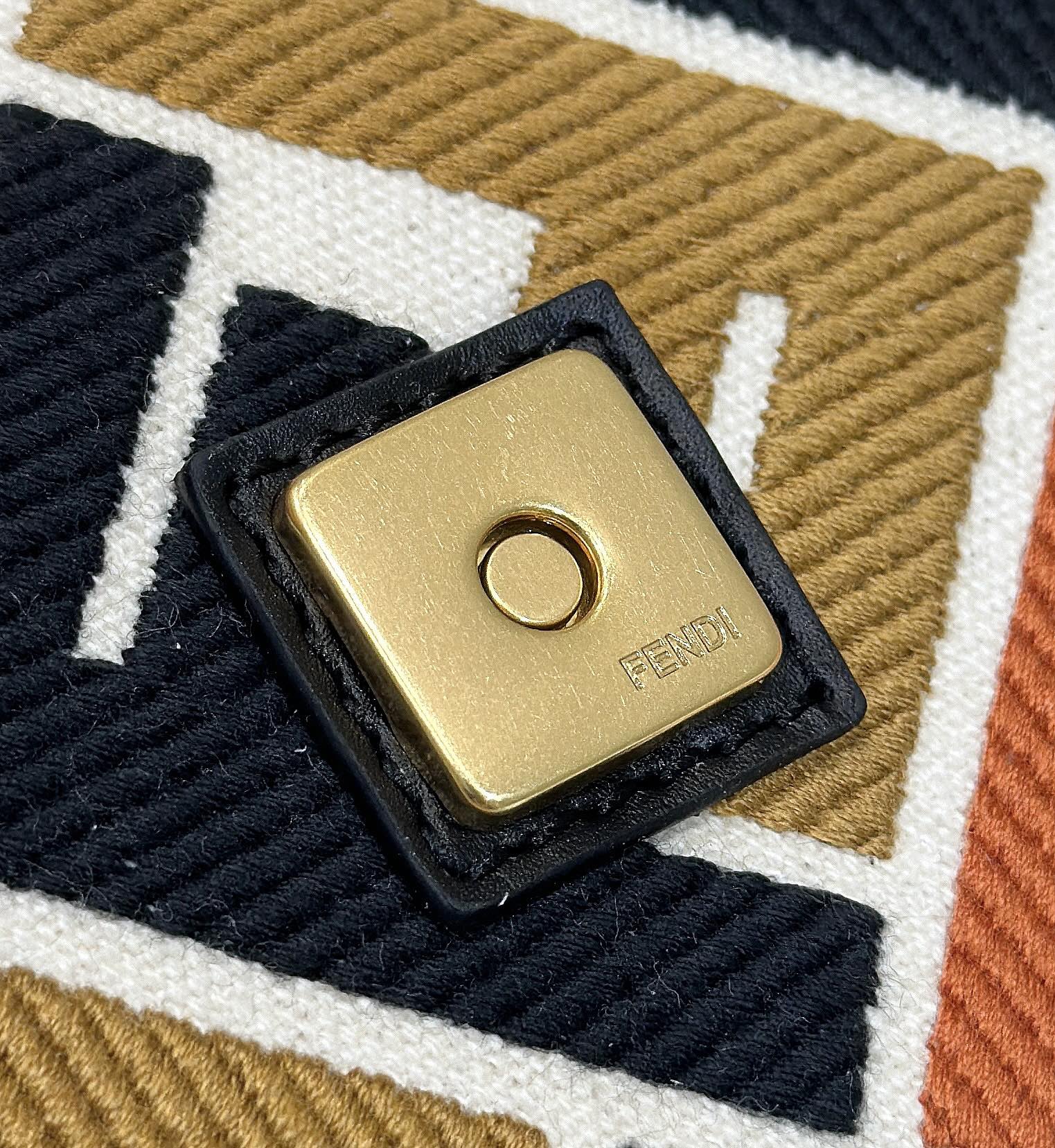 FENDI ORIGAMI MINI 19 BROWN MIX BLACK FF JACQUARD FABRIC BAG