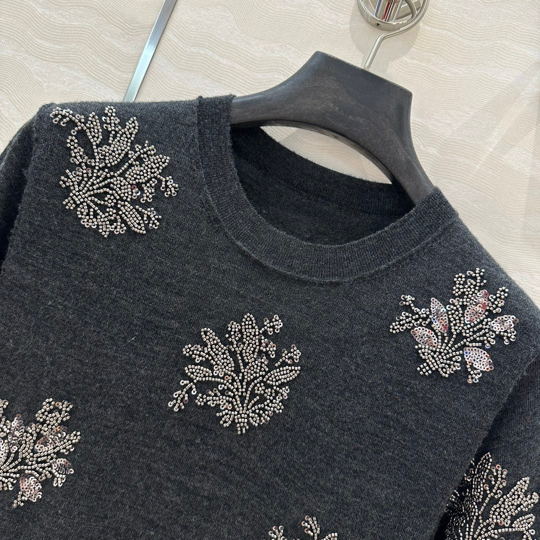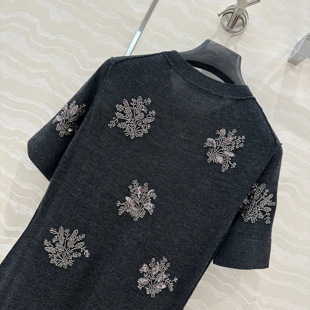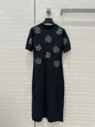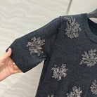 Fendi Beaded Flower Knitted Dress Black Gray Wool