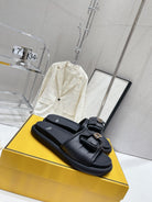 FENDI BAGUETTE SLIPPERS IN BLACK LAMBSKIN WITH GOLD HARDWARE