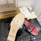 FENDI FLORAL SLIDES IN CHERRY RED MIX TAN BEIGE FABRIC