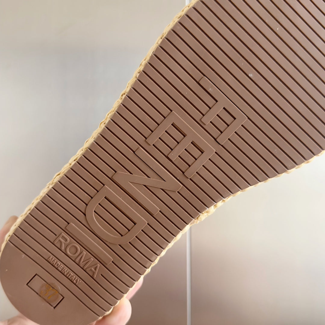 FF Sunshine 65 Beige Cotton Brown Leather Fibre Flatform Slide