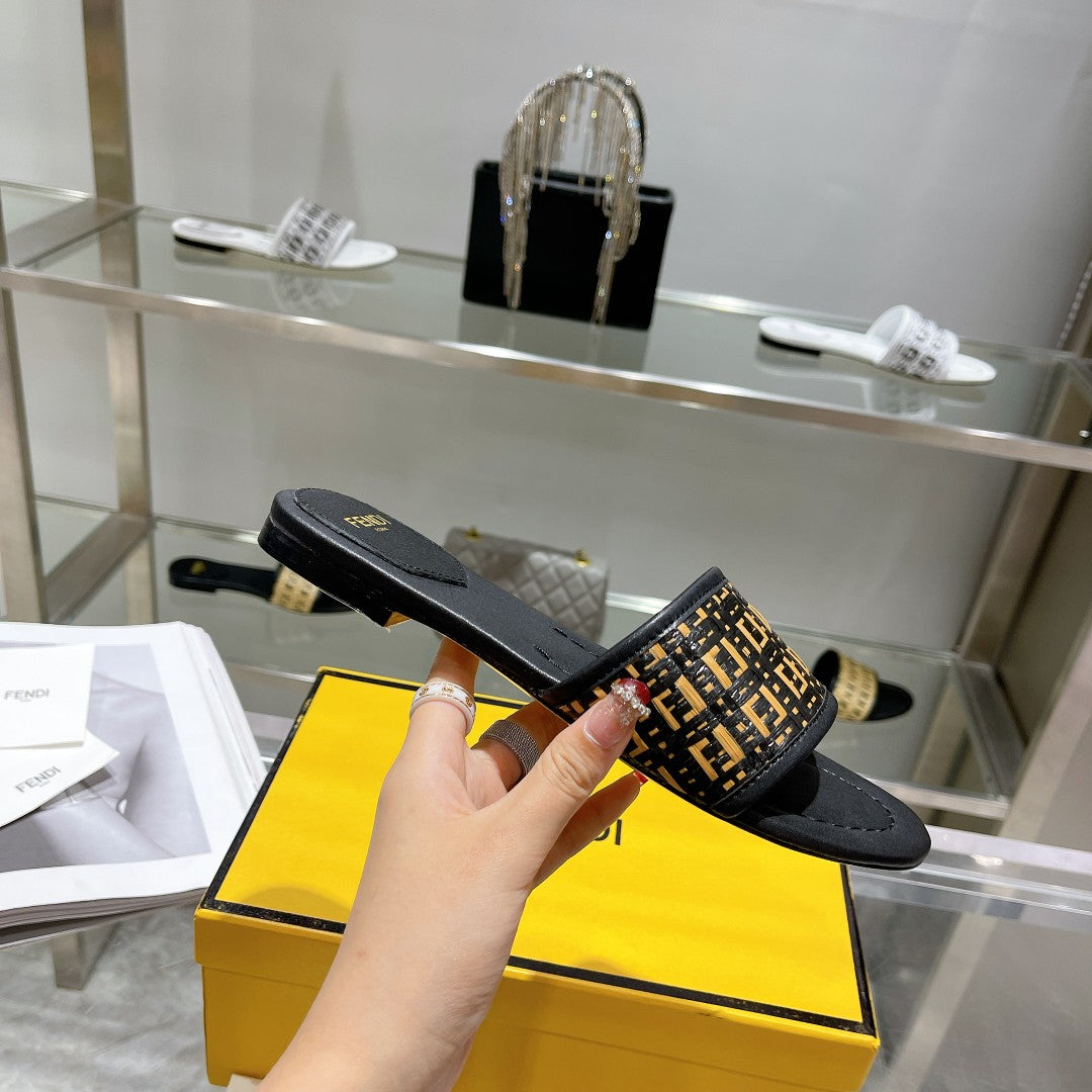 FF Women Raffia Black Sandal