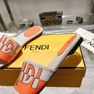 FF Women Roma Signature Orange Grey Canvas Leather Slide