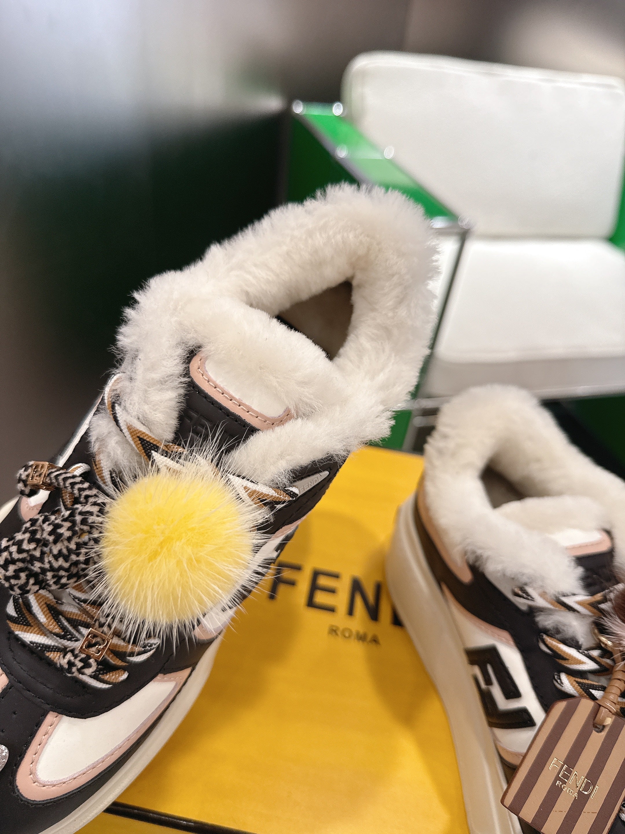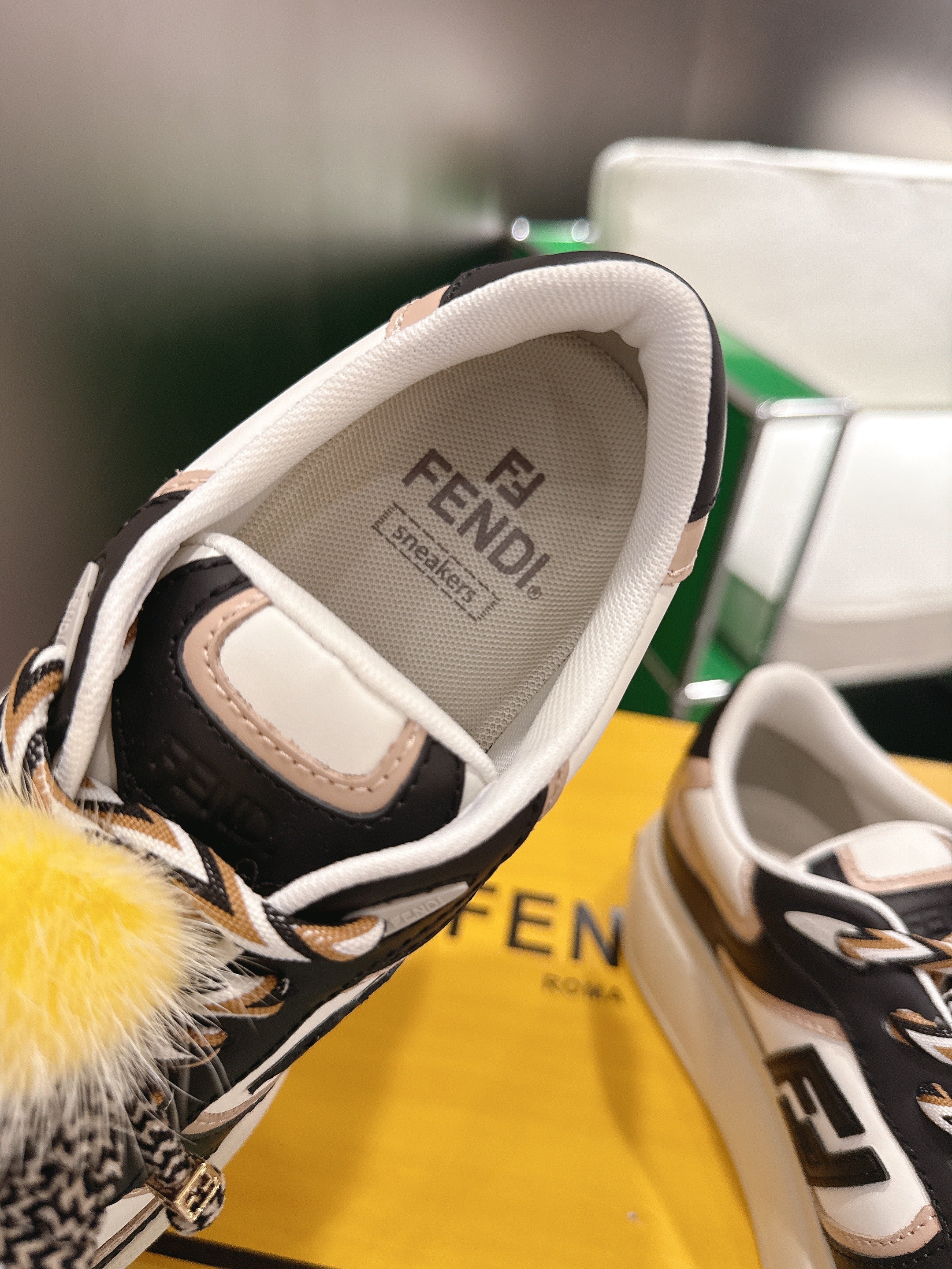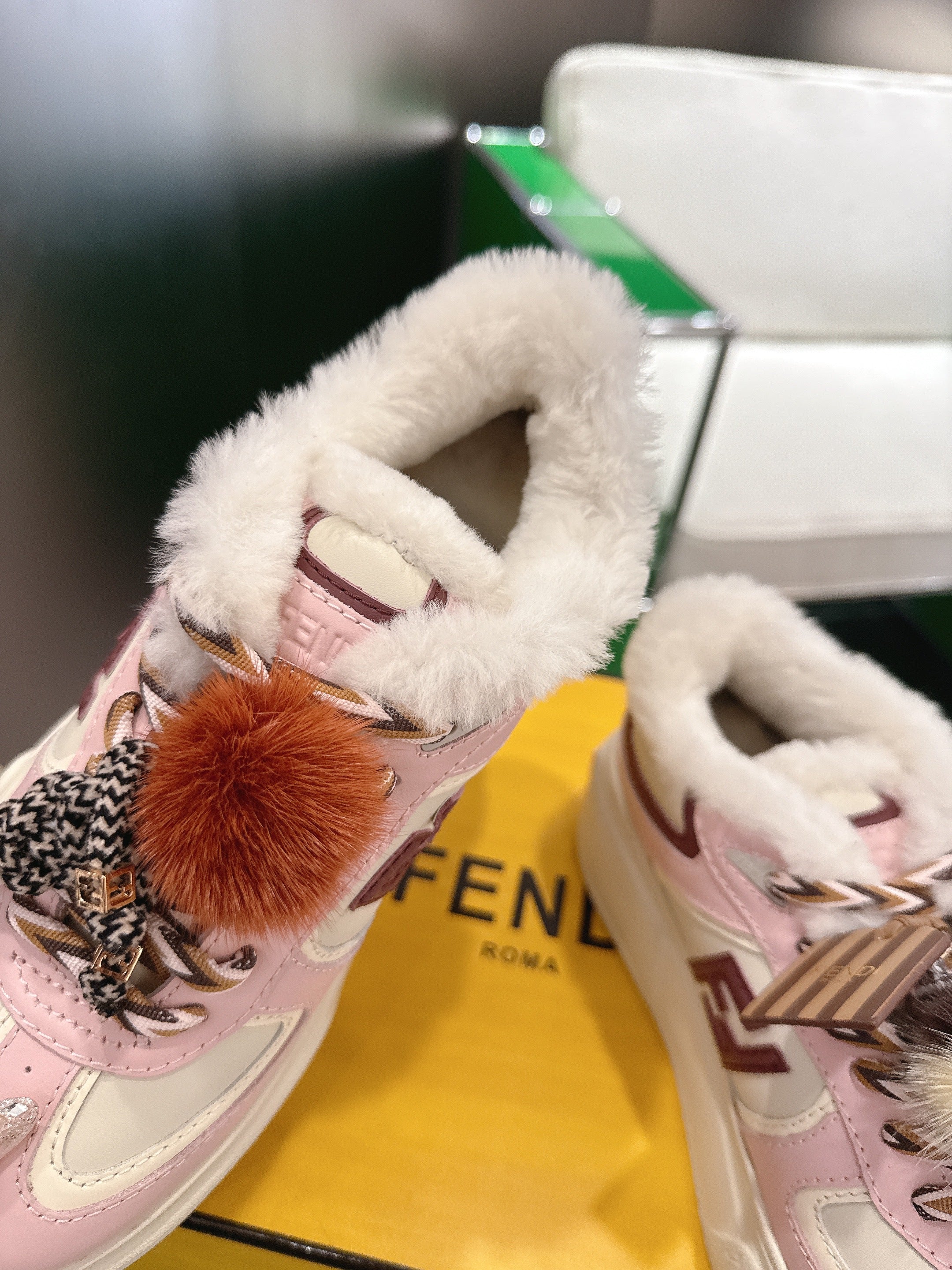 Fendi 2025 Match Platform Sneakers Pink White Leather Wool 562582