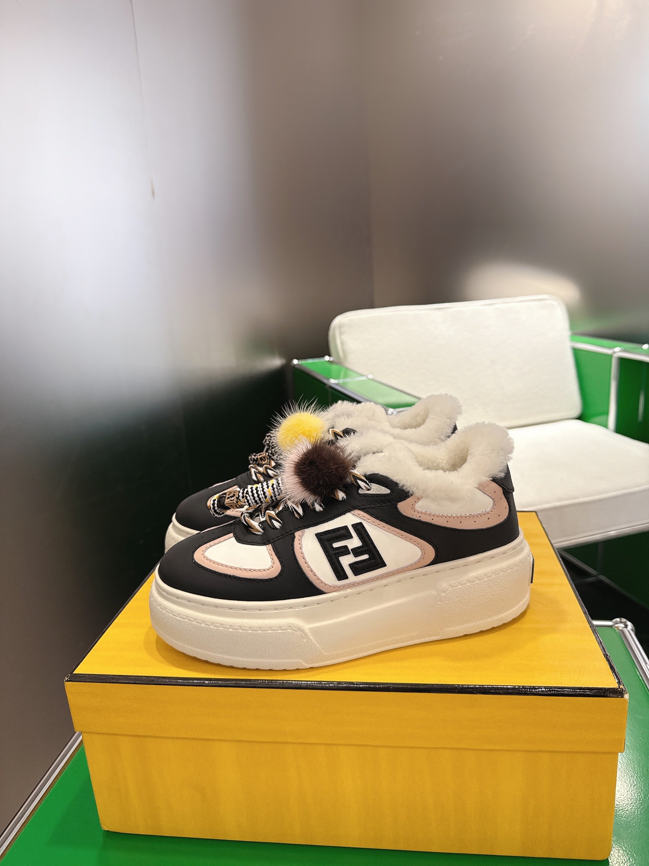Fendi 2025 Match Platform Sneakers Black Leather Wool 562578