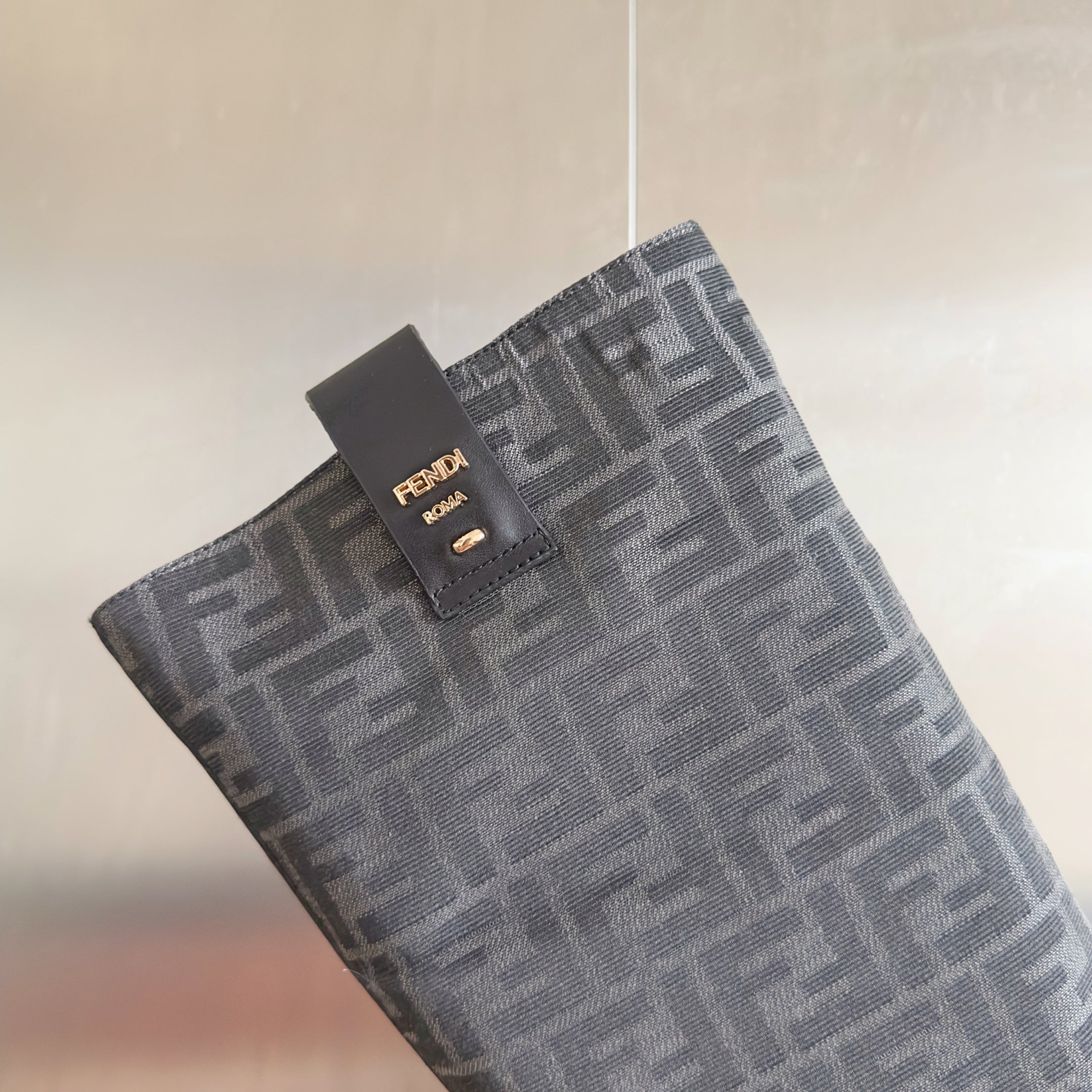 Fendi 2025 Monogram Embossed Long Boot Black Sheepskin 553110
