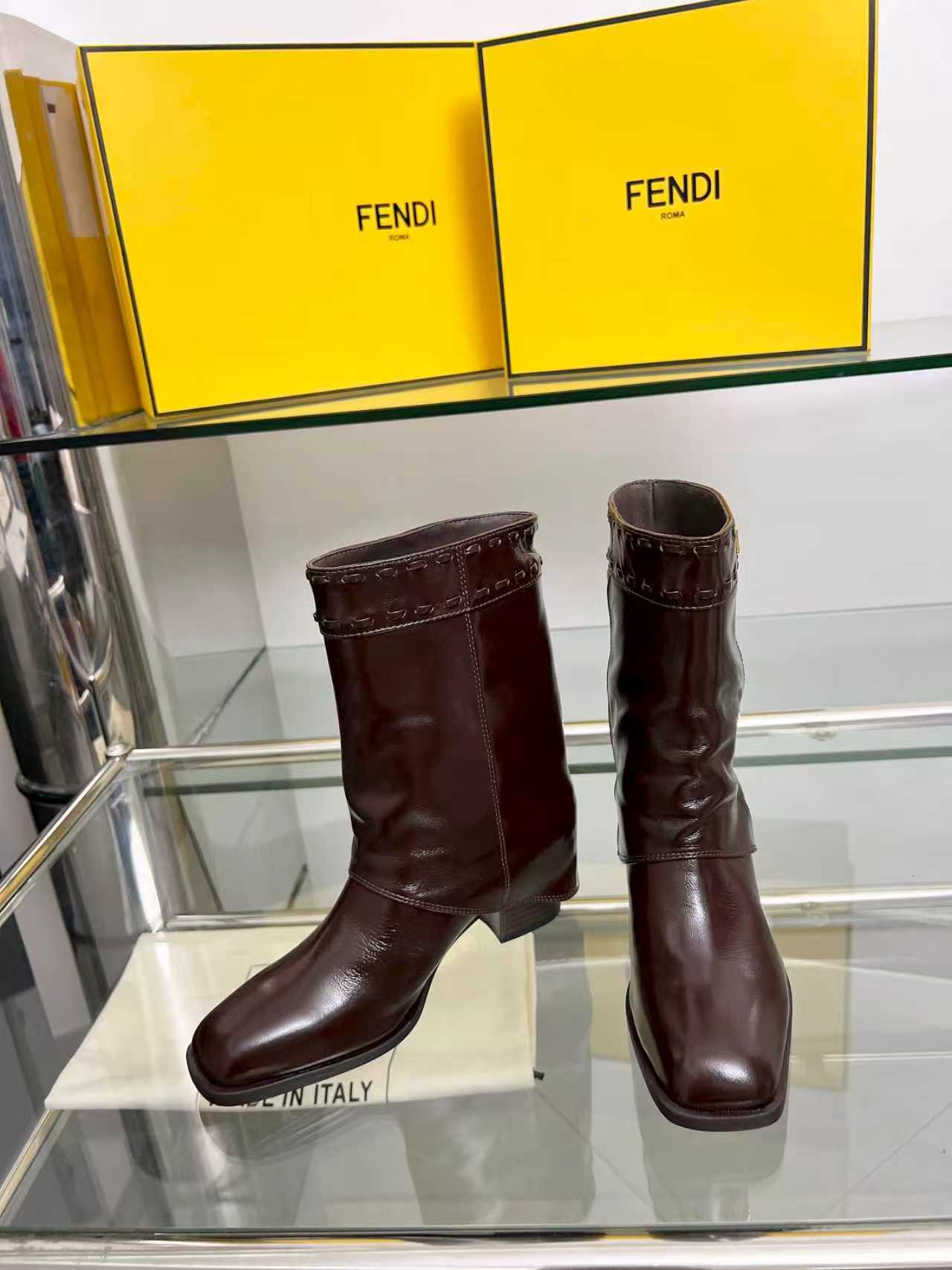 Fendi 2025 Filo Black Sheepskin and Brown FF Fabric Boot 553107