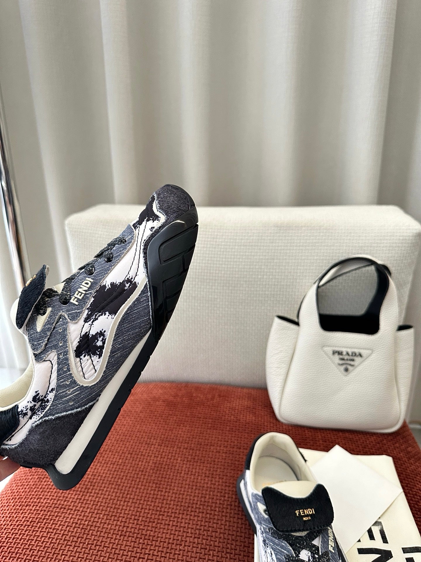 Fendi 2025 FF Jacquard Pattern Sneaker Black Suede Cowhide 559789