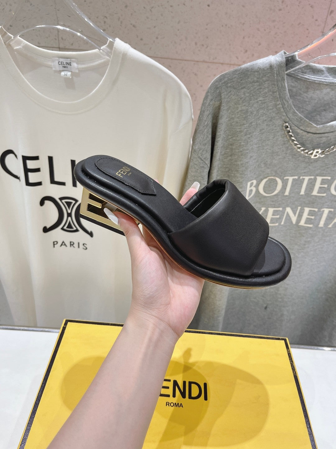 FENDI LOGO SLIDES IN SYRUP BROWN CALFSKIN