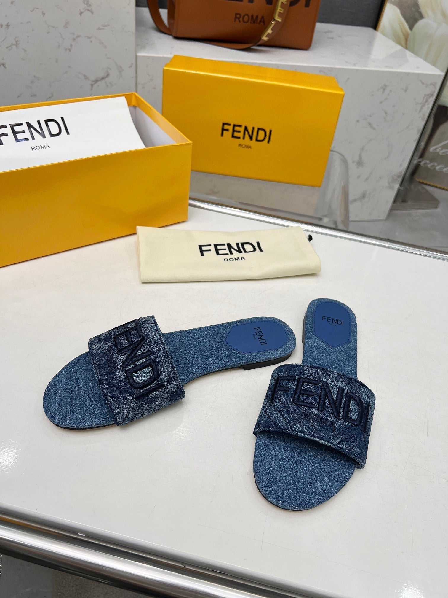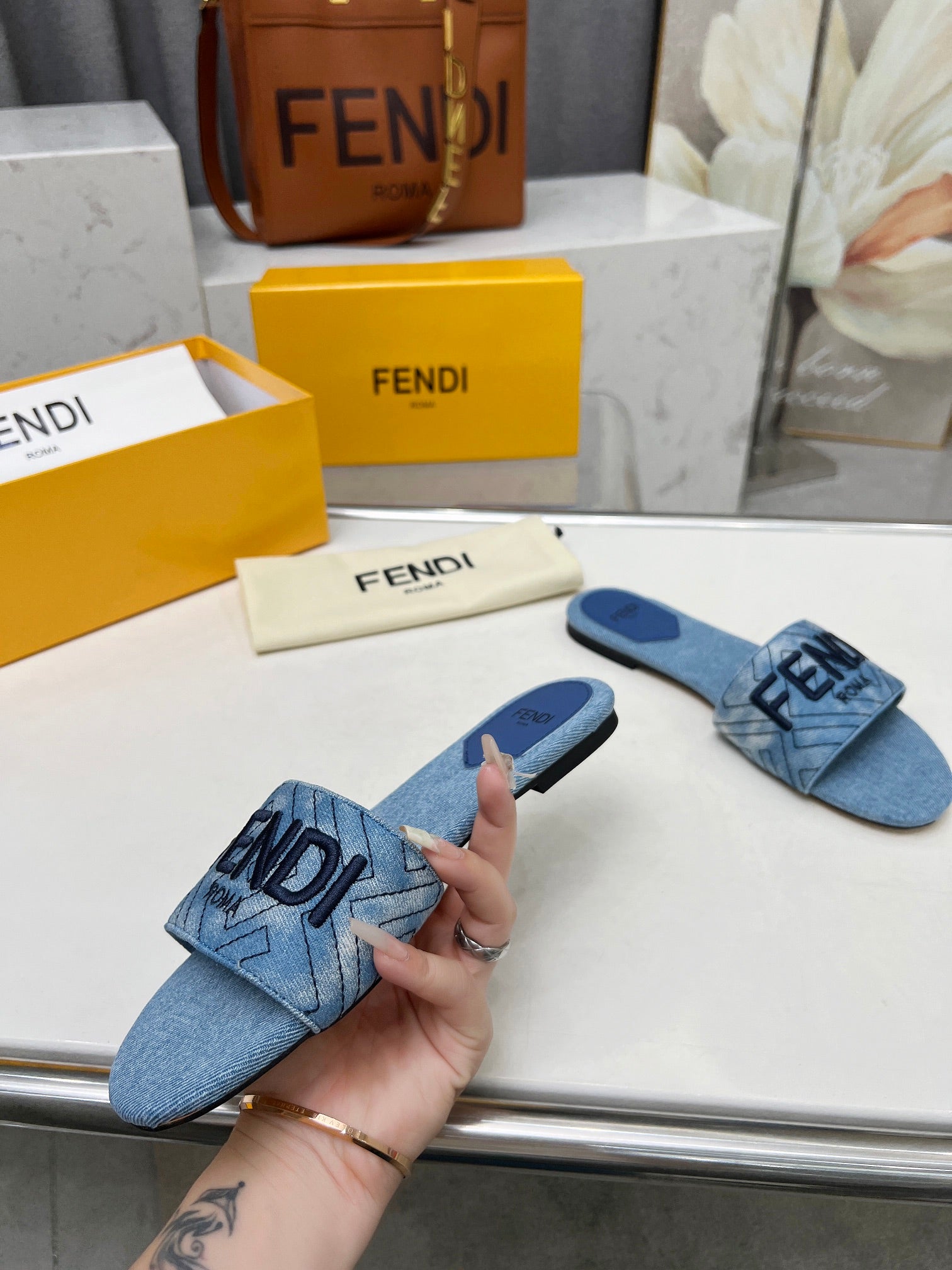 FENDI FLORAL SLIDES IN BLUE MIX WHITE FABRIC