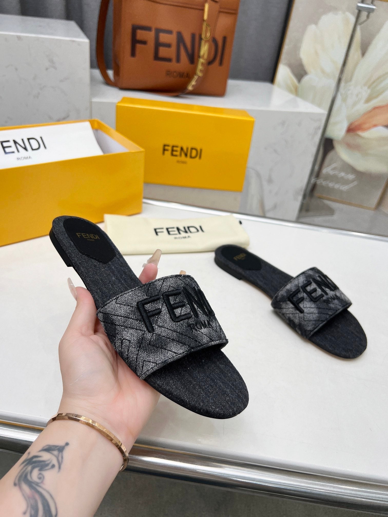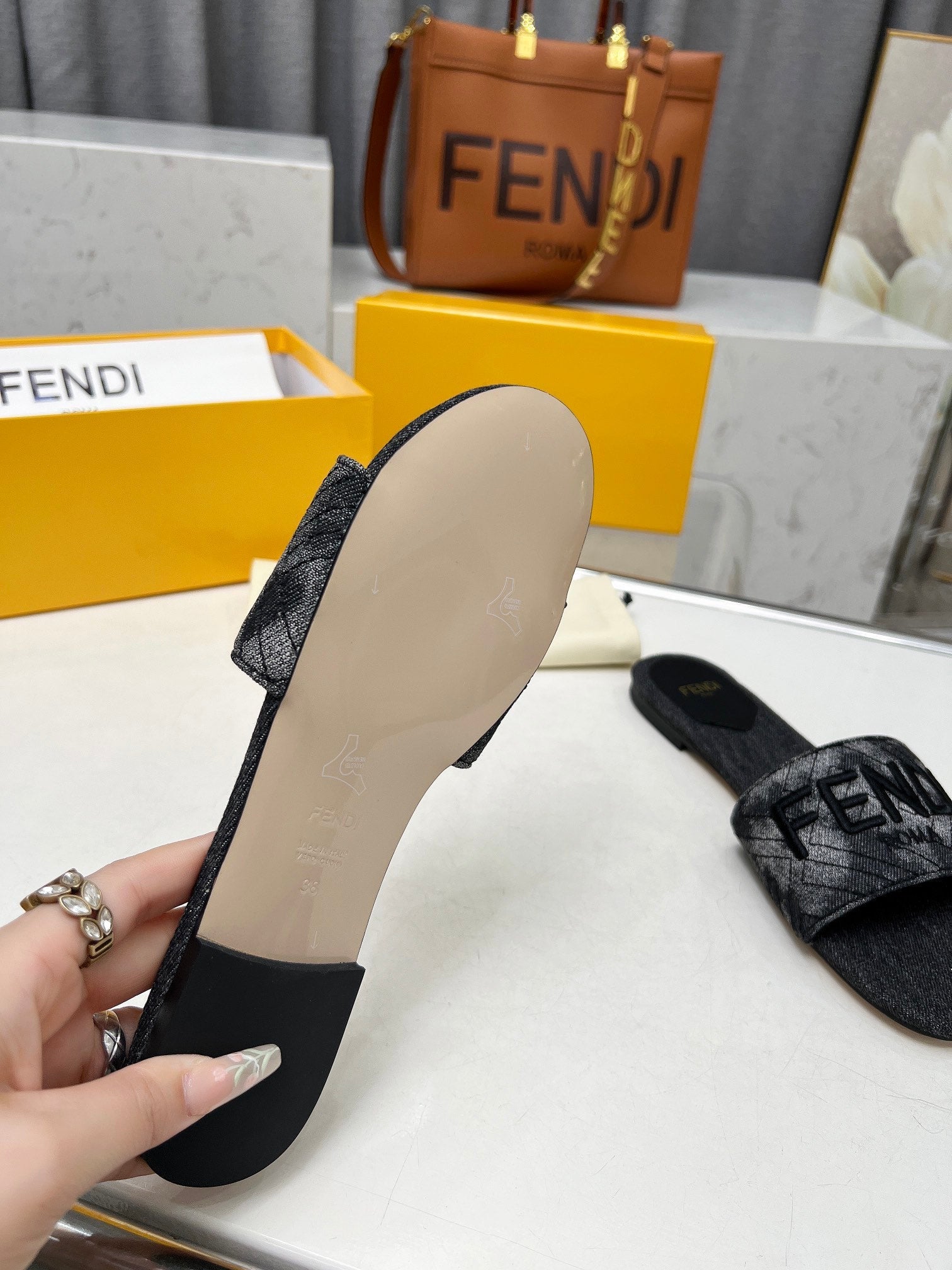 FENDI ROMA SLIDES IN BLACK FUSSBETT LAMBSKIN