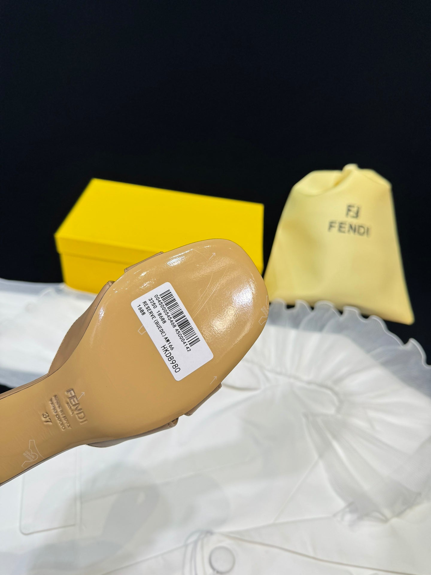 FENDI GRAPHY LOGO LETTERING SLIDES IN BEIGE LAMBSKIN WITH GOLD HARDWARE