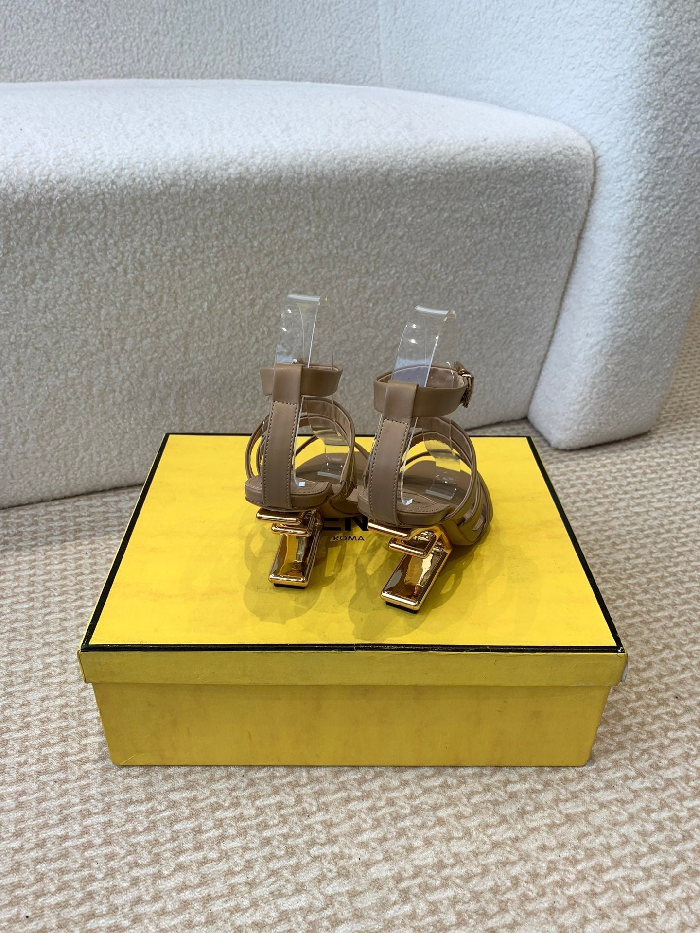 FENDI HIGH SANDAL 10 CM IN BEIGE CALFSKIN
