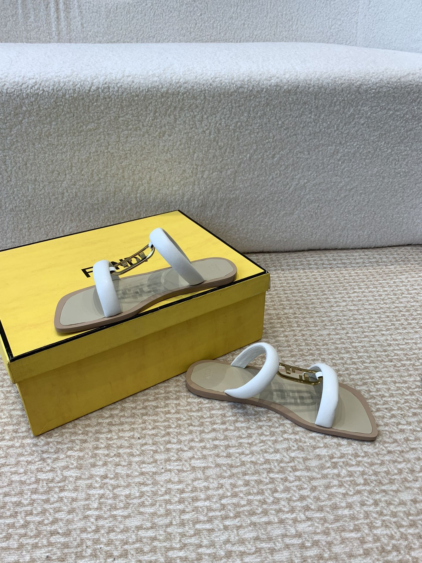 FENDI O'LOCK THONG SANDAL WHITE CALFSKIN WITH GOLD HARDWARE