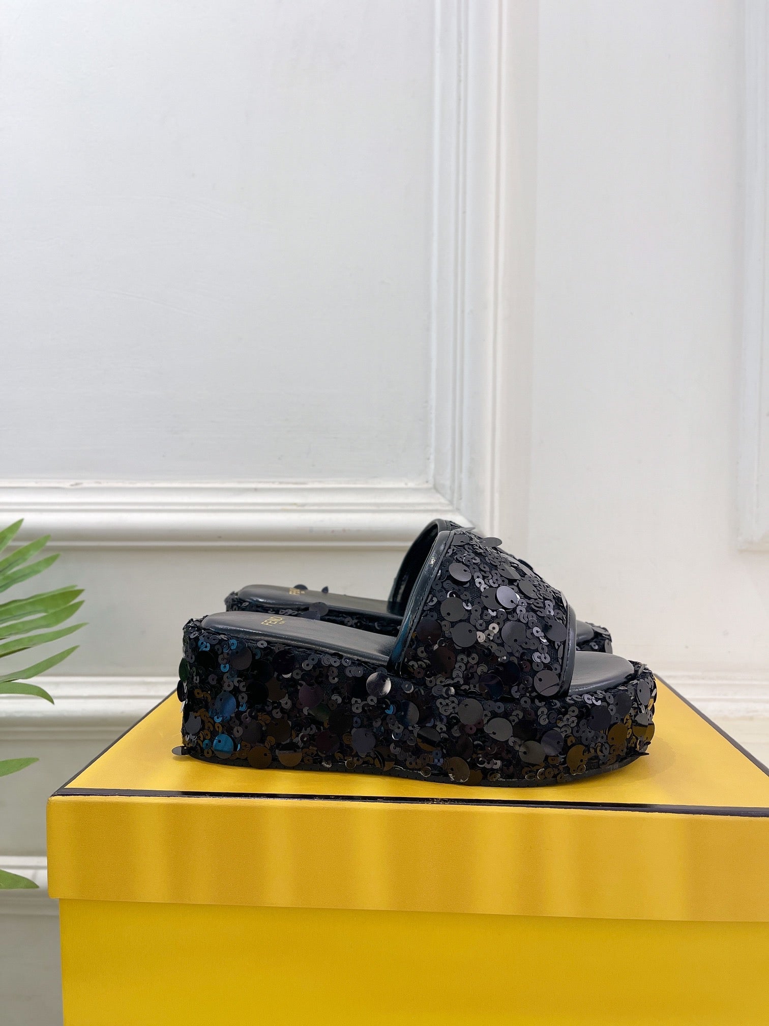 FENDI THICK SOLE 3 CM SEQUIN SLIPPER BLACK