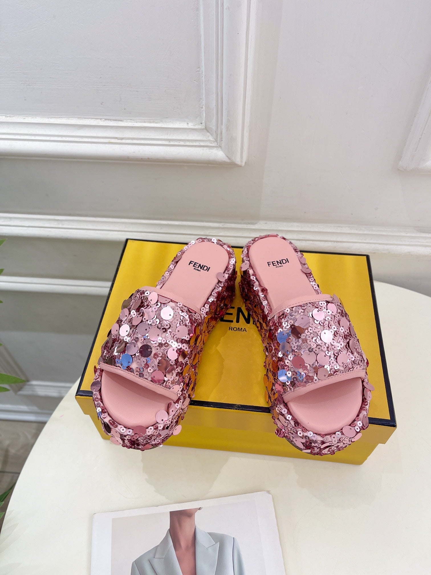 FENDI THICK SOLE 3 CM SEQUIN SLIPPER ROUGH PINK