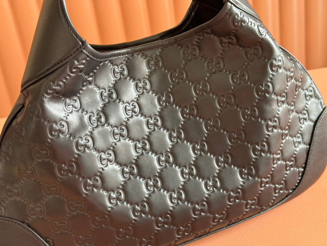 Gucci Body Double Lock Handbag Black Embossed Leather 248137