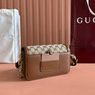 Gucci GO Small Shoulder Bag Brown mix Beige Leather Canvas 248116