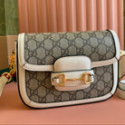 Gucci Horsebit Bag Ebony mix White Leather Canvas 244256