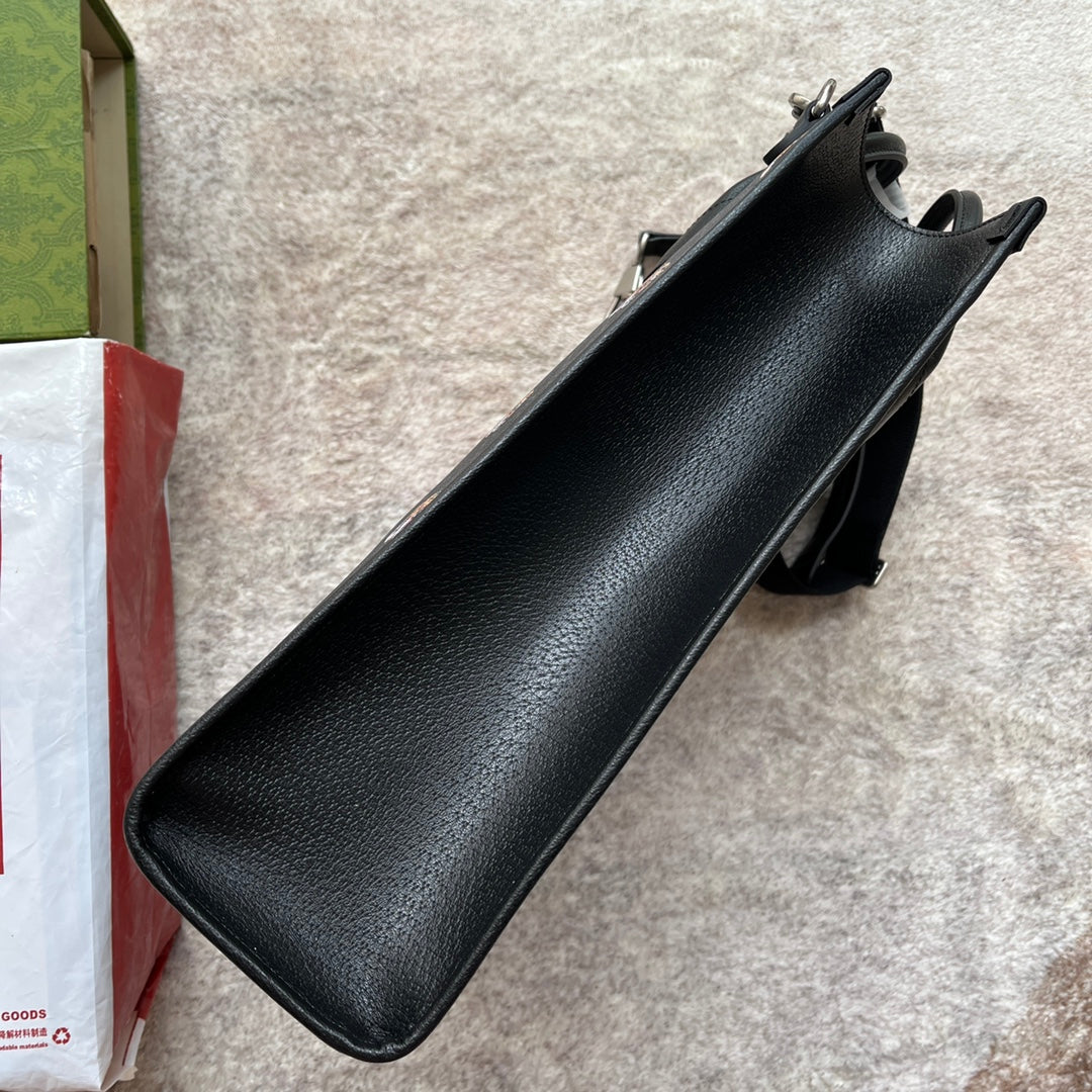 TIGER PRINT MEDIUM TOTE BAG 38 IN BLACK CANVAS AND LEATHER TRIM