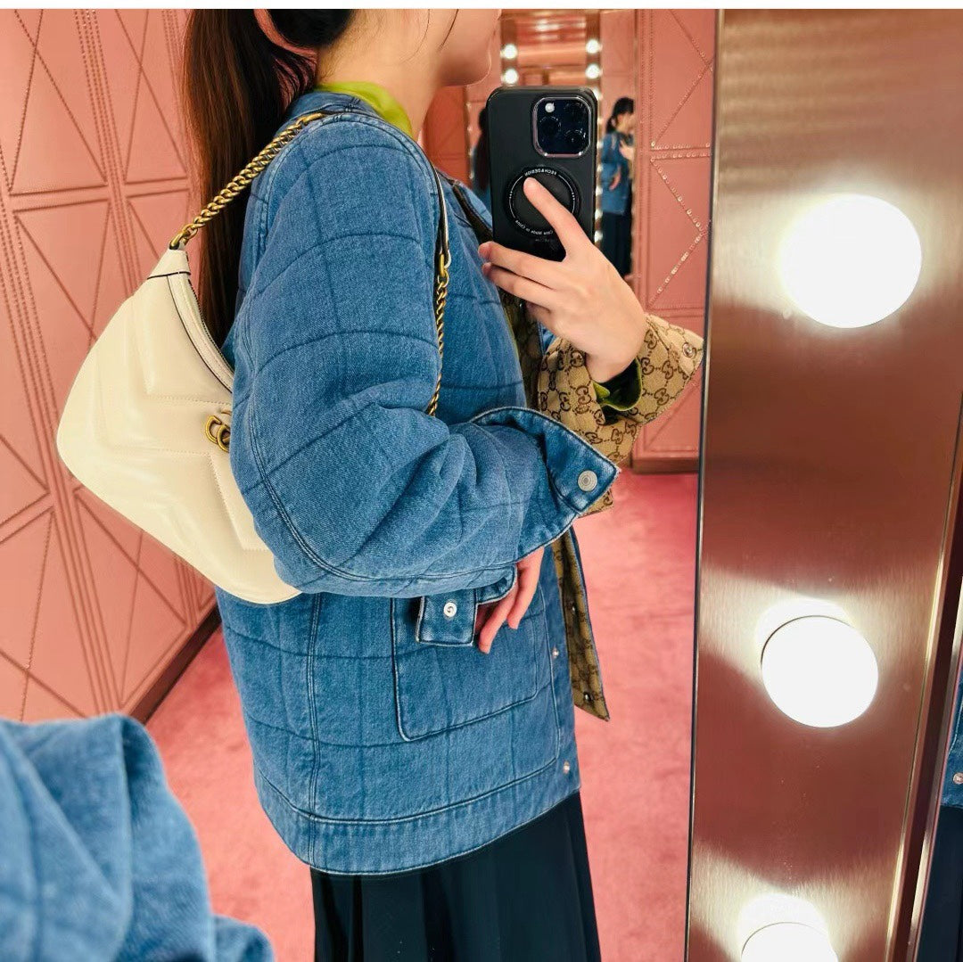 GG MARMONT 13 MINI TOP HANDLE BAG WHITE CALFSKIN