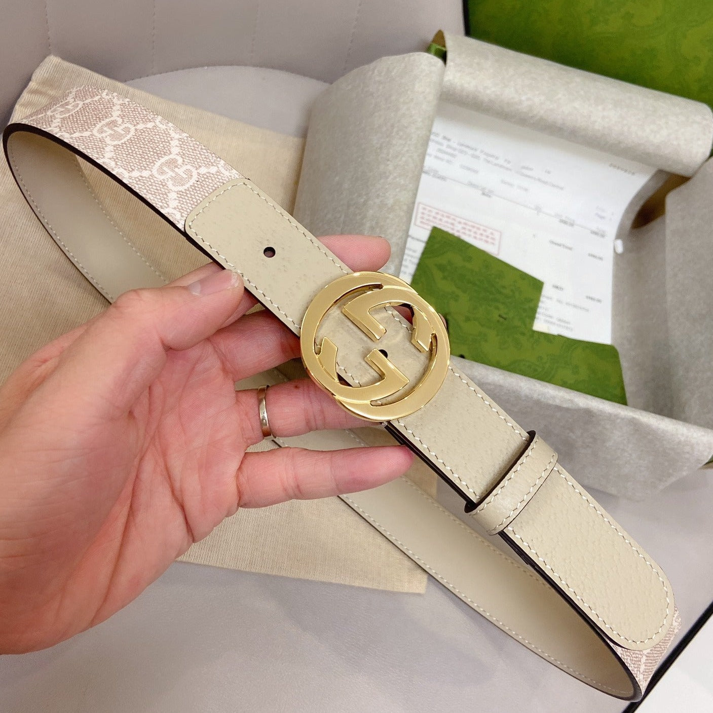 GG BELT DOUBLE G BUCKLE PINK CANVAS