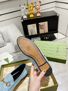 MEN'S LOAFER WITH HORSEBIT IN LIGHT BLUE MONOGRAM JACQUARD FABRIC