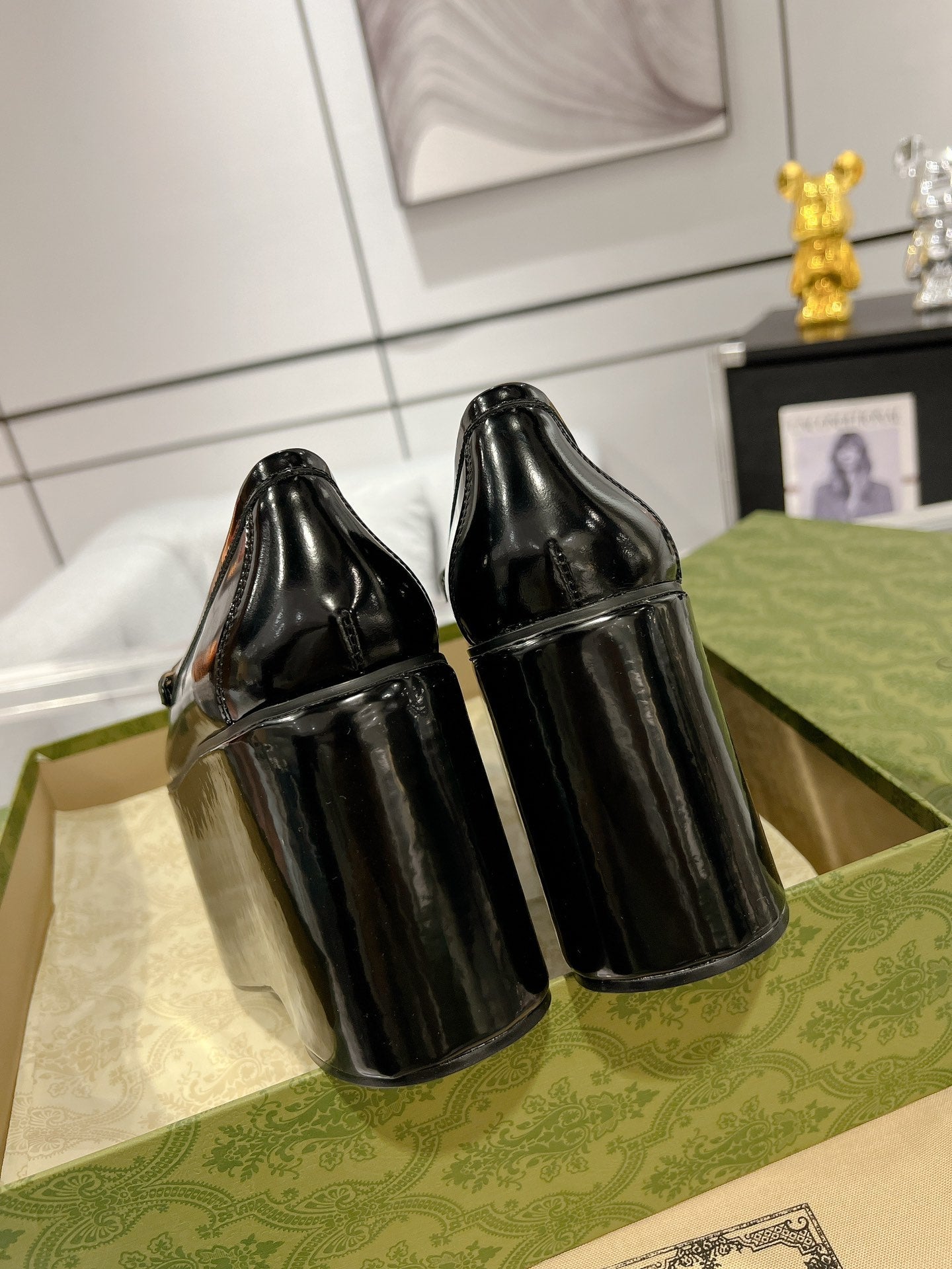 GG HORSEBIT PLATFORM LOAFER GLOSSY BLACK CALFSKIN