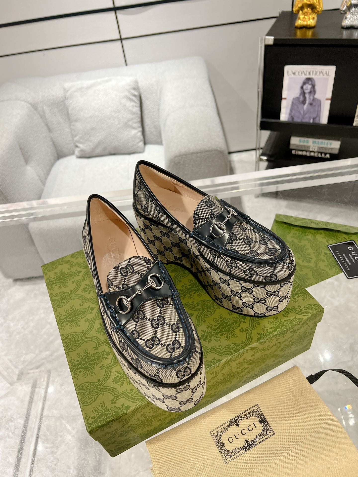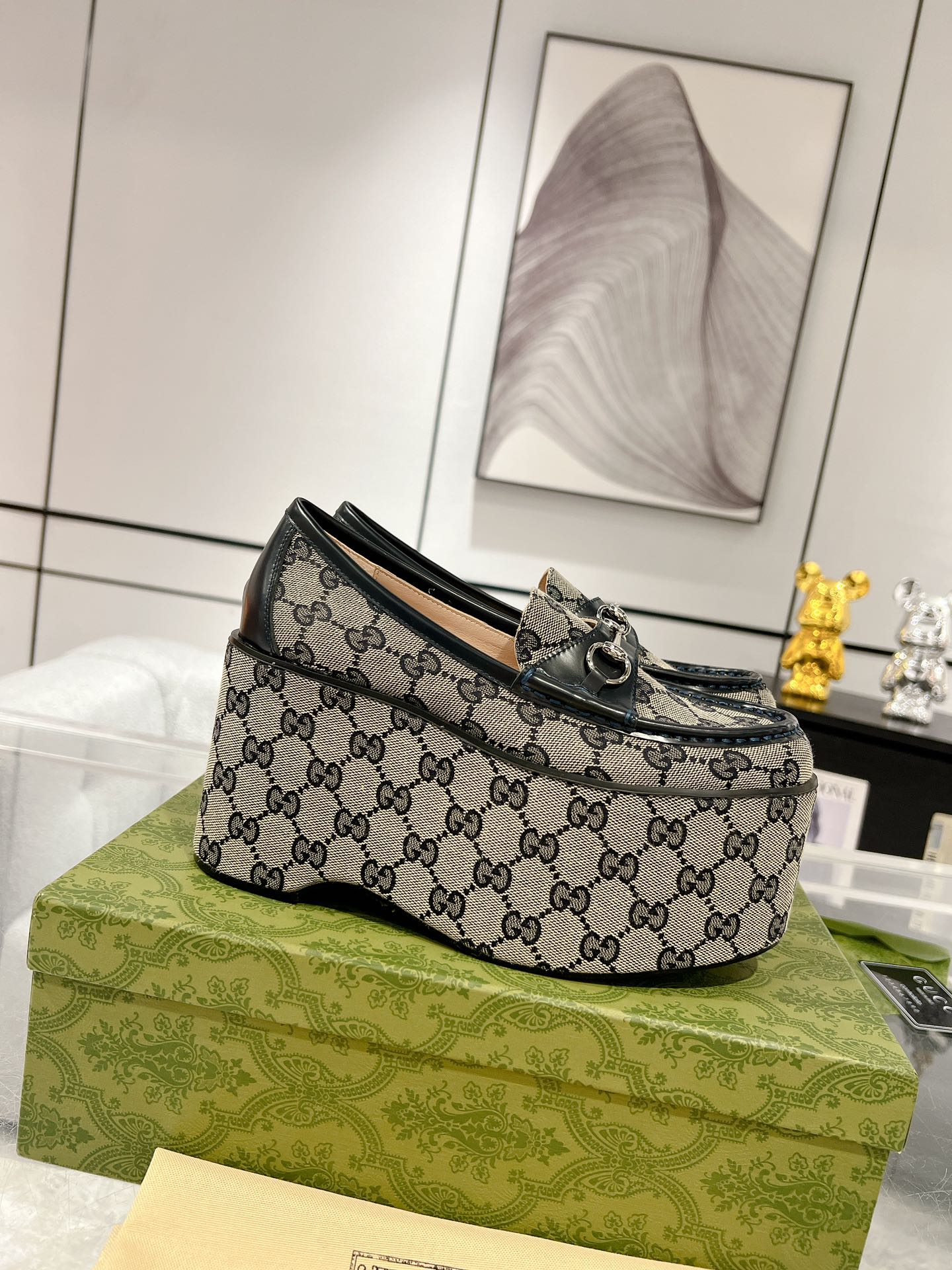 GG HORSEBIT PLATFORM LOAFER BLACK CALFSKIN