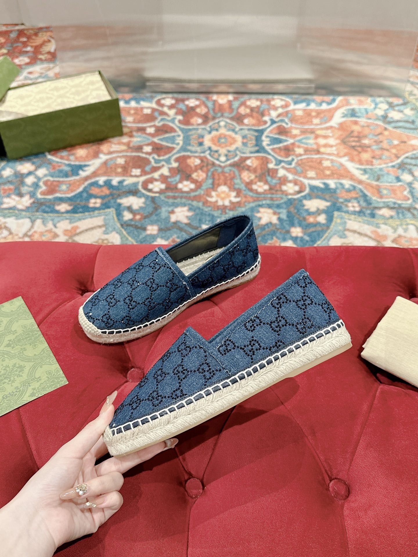 GG ESPADRILLE LOAFER CRIMSON AND OCEAN CANVAS