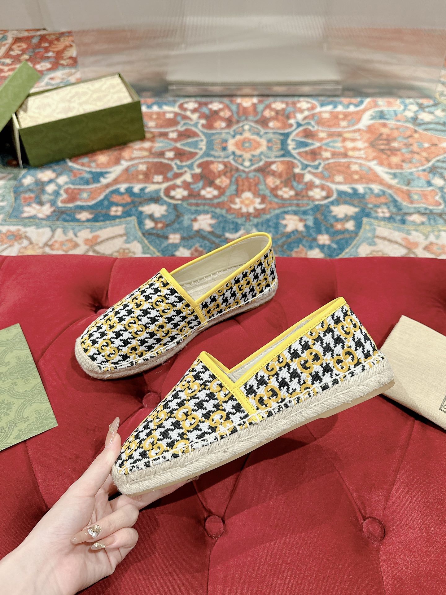 GG ESPADRILLE LOAFER LEMON AND BLACK CANVAS