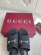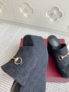 GC 25 Wedge With Horsebit Sandal Black Canvas 291030