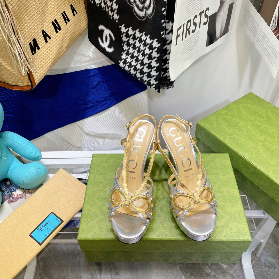 GG HIGH HEEL SANDAL METALLIC GOLD AND SILVER LAMBSKIN