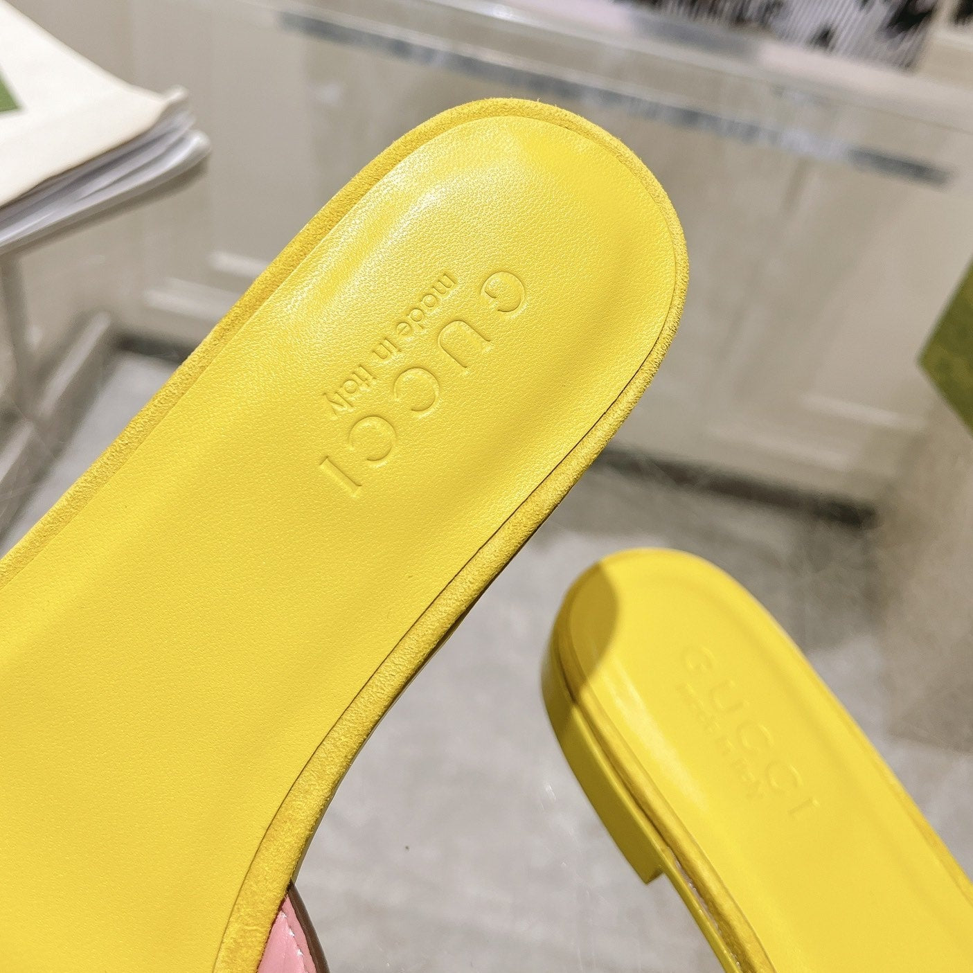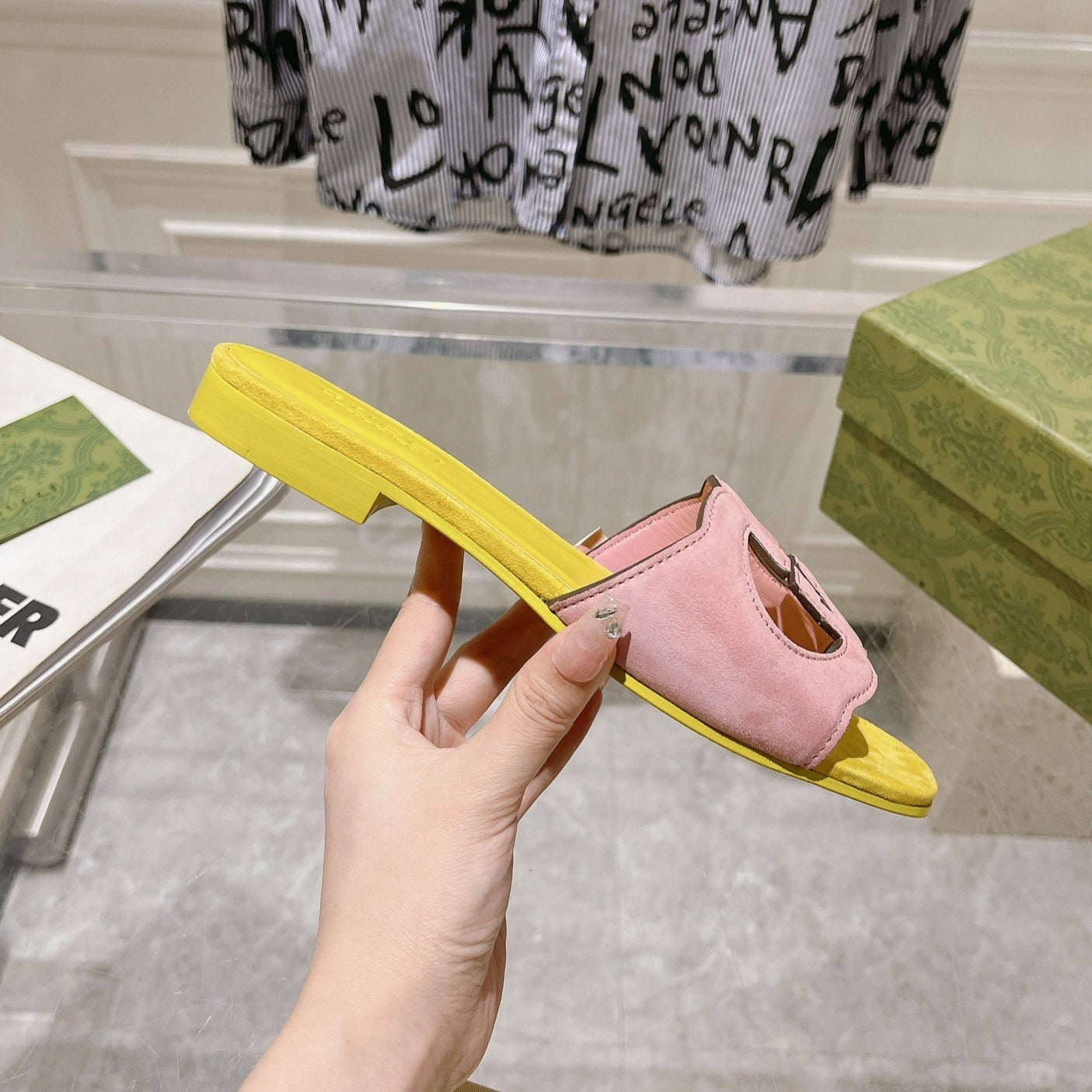GG Interlocking double G hollow slippers Blush Pink Yellow